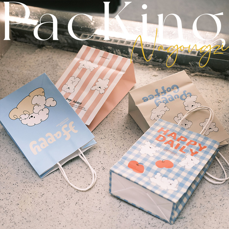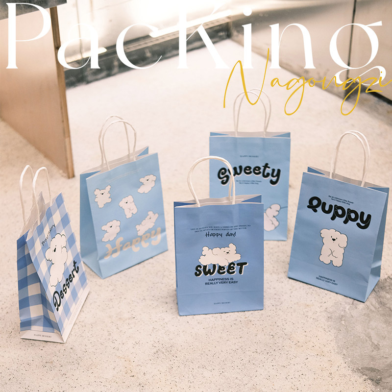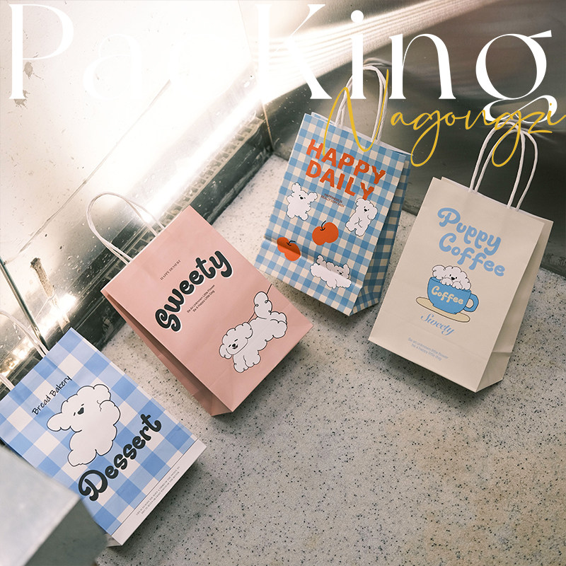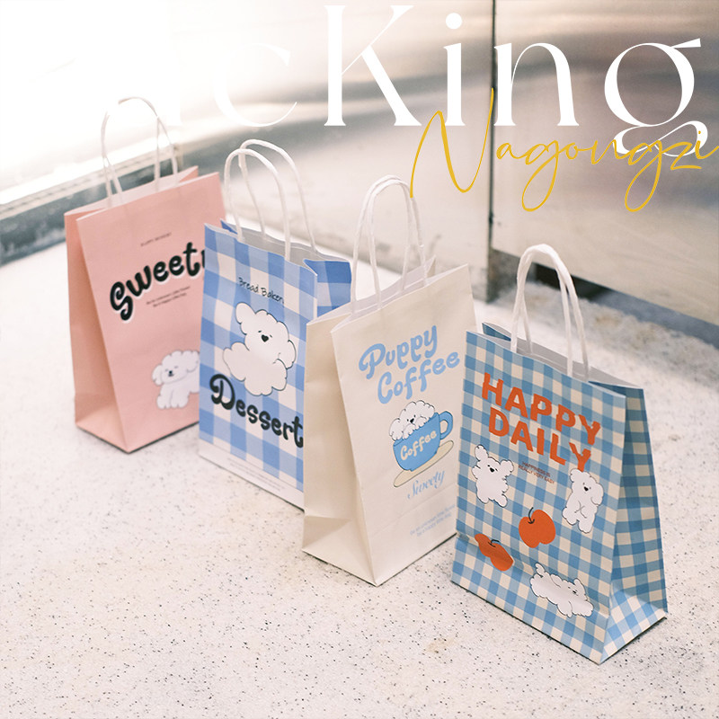 puppy系烘焙手提袋甜品打包袋定制面包蛋糕店外卖小袋子牛皮纸袋