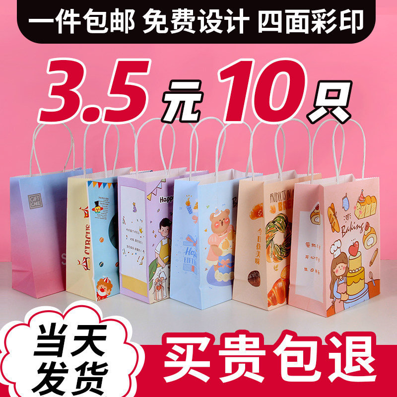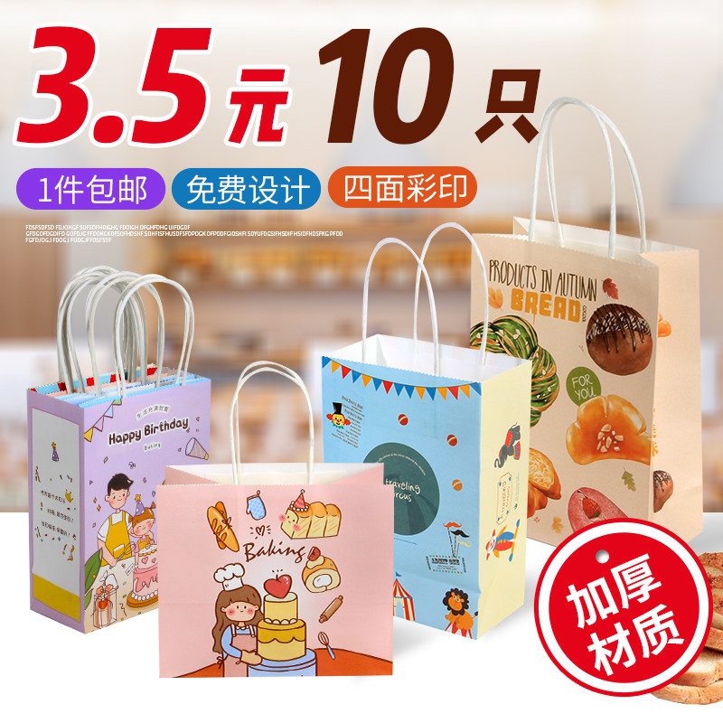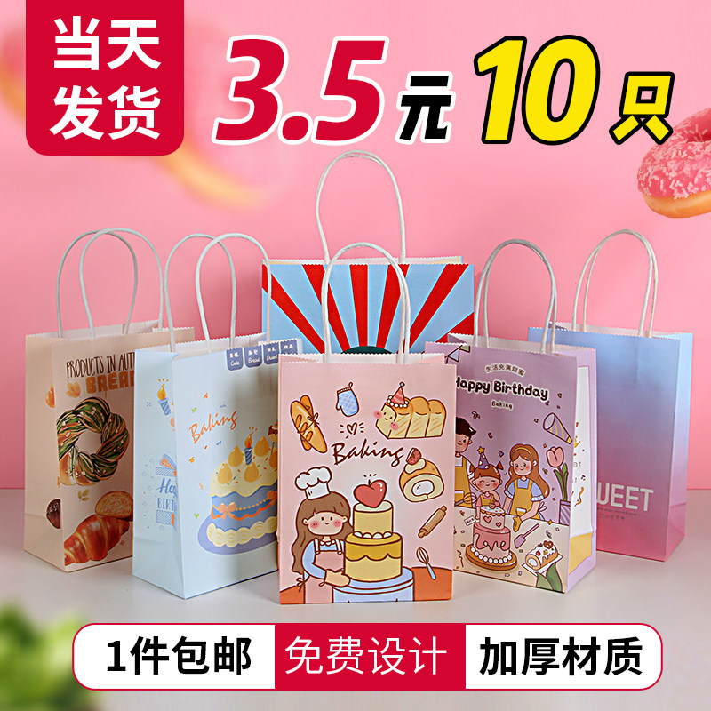 甜品打包袋手提袋烘焙提拉米苏蛋糕面包外卖袋子牛皮纸袋包装定制