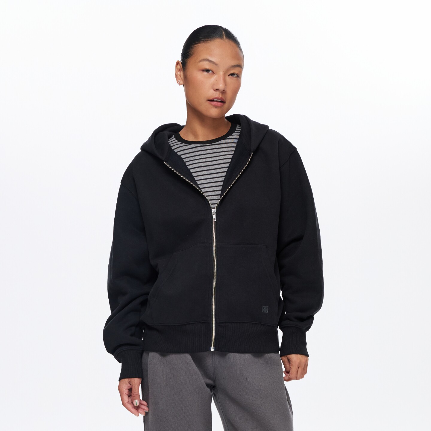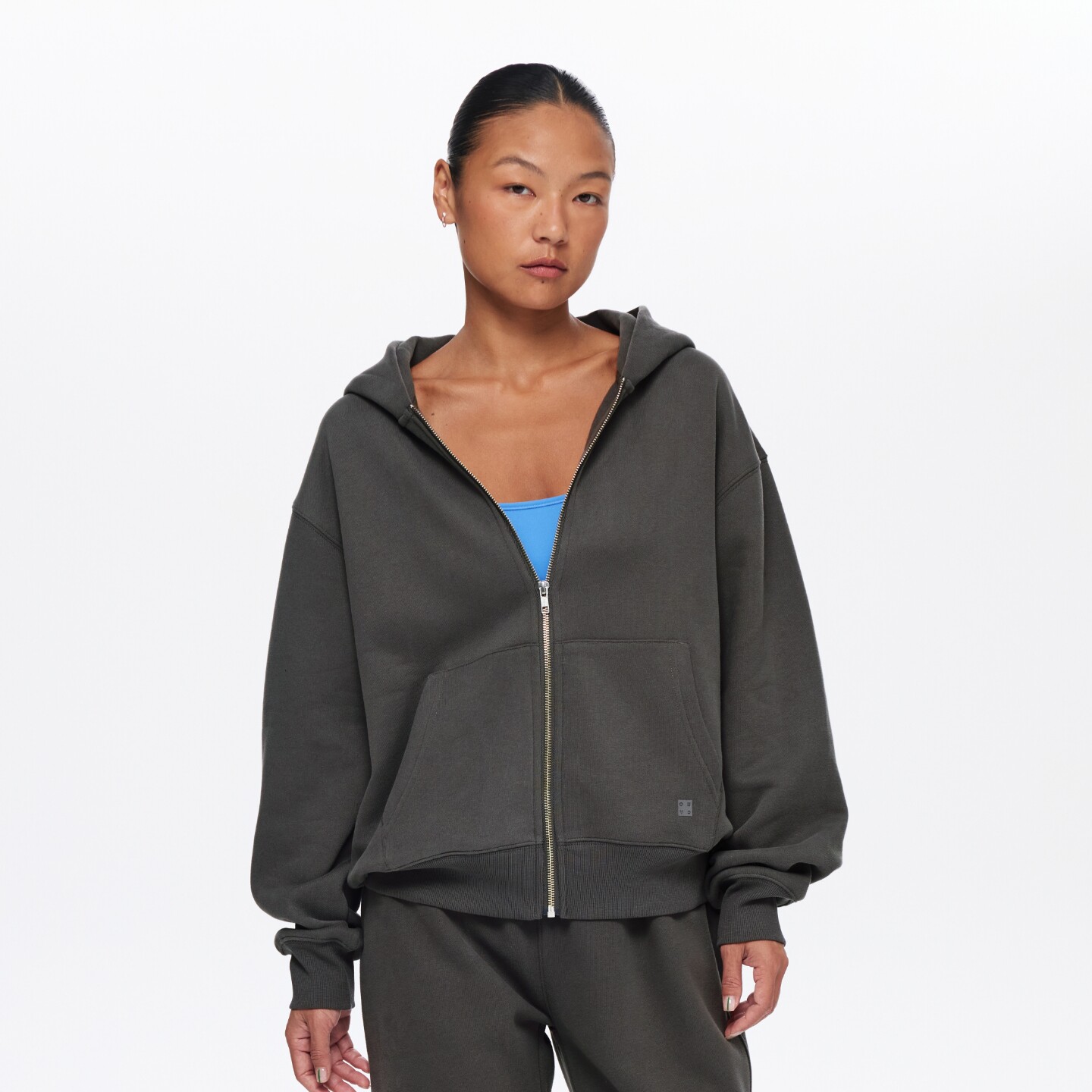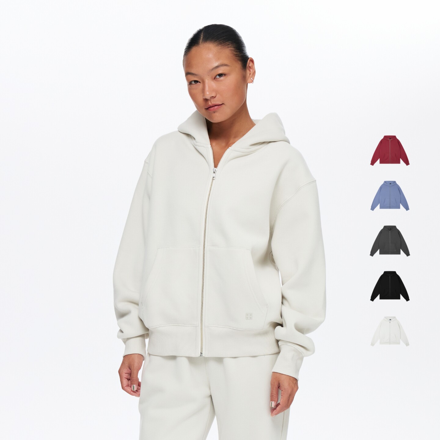 oneup加厚抓绒连帽卫衣外套女秋冬季小个子宽松拉链开衫运动上衣