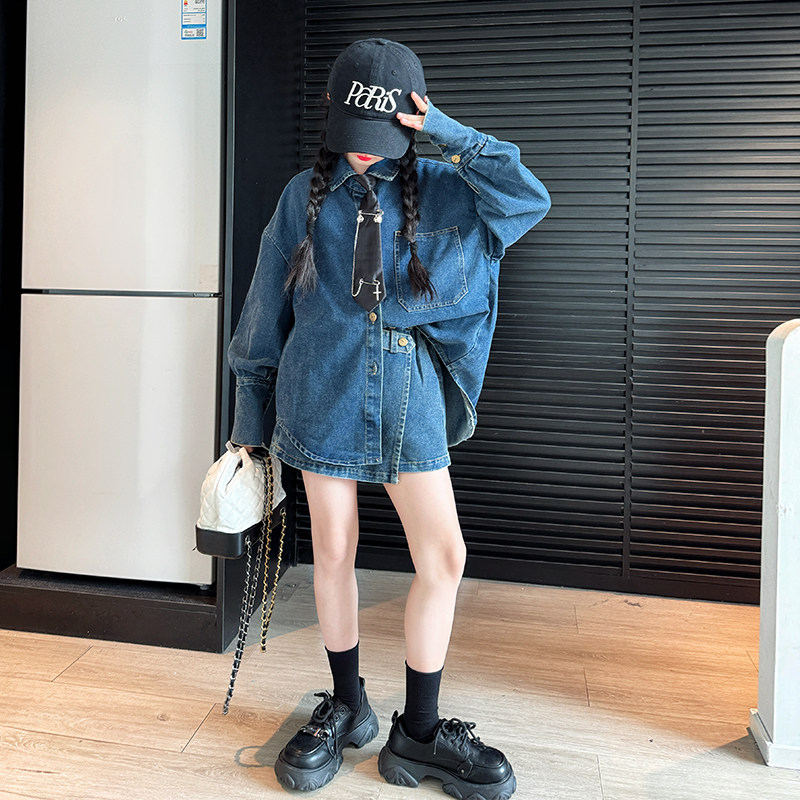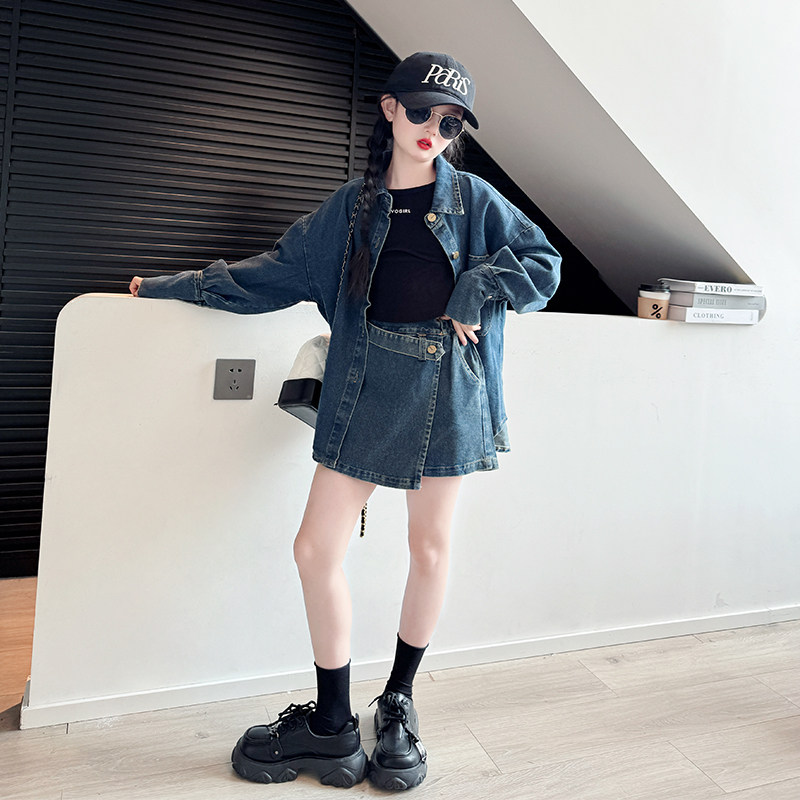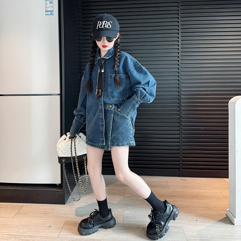 女童春装套装2026新款儿童牛仔外套女孩大童春秋酷飒炸街两件套裙