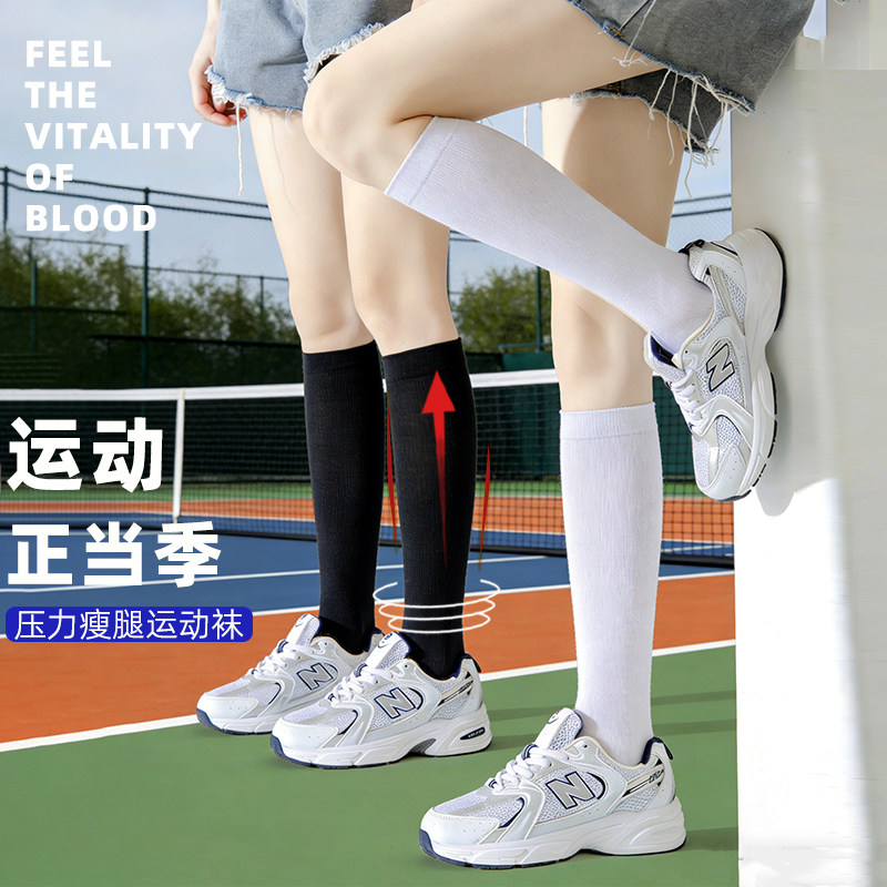 运动肌能压缩袜子女跳绳专用压力小腿专业跑步马拉松瘦腿长筒袜