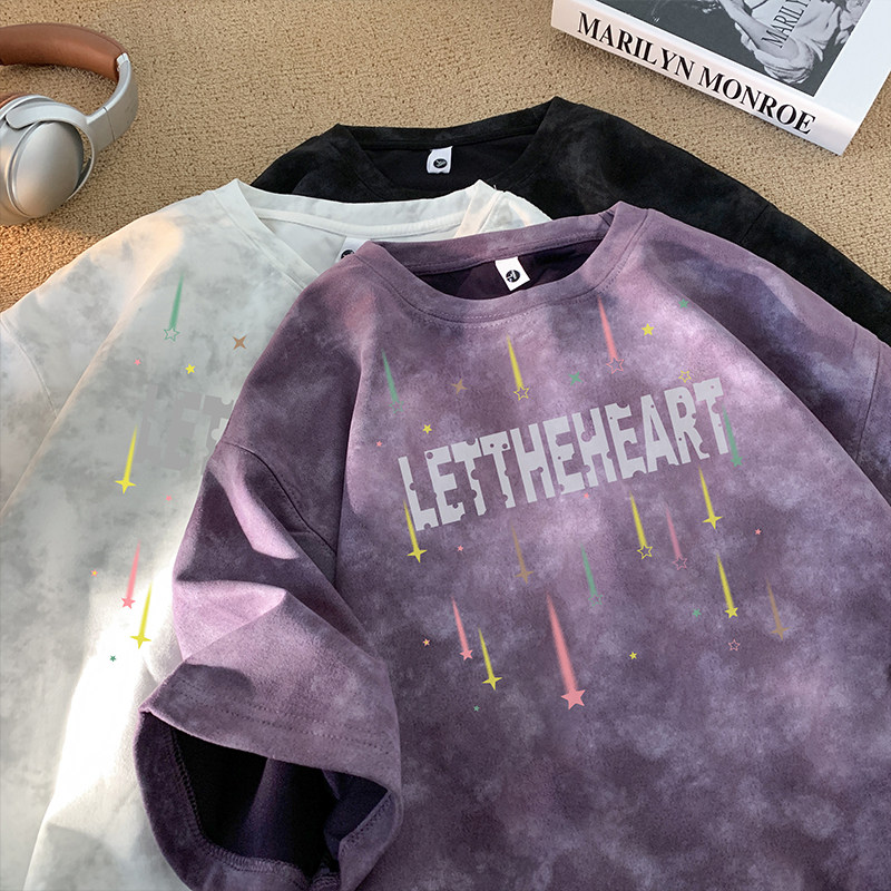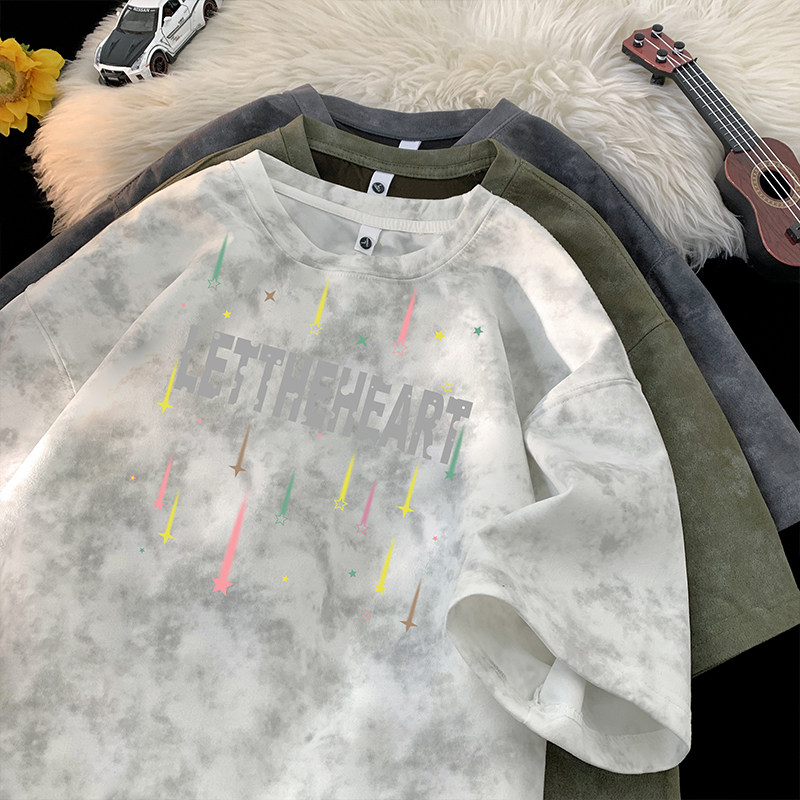 美式潮牌扎染短袖T恤男夏季2026新款宽松复古青少年休闲半袖体恤