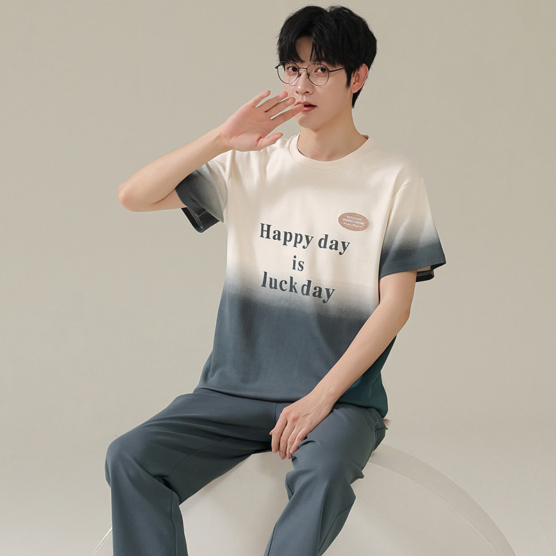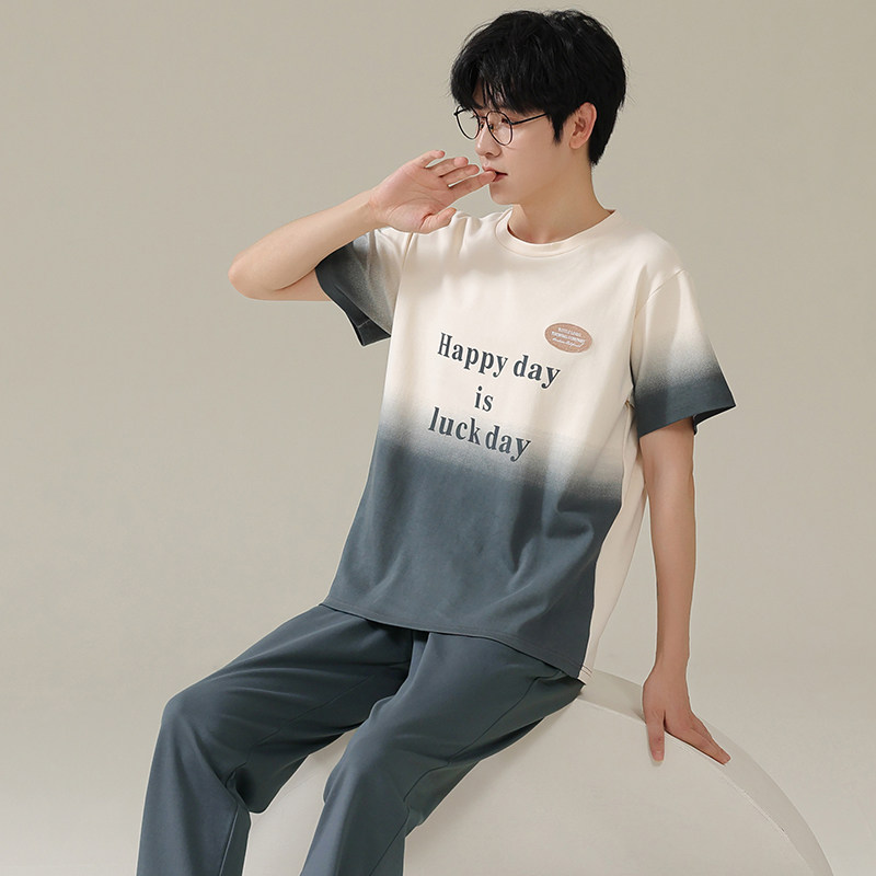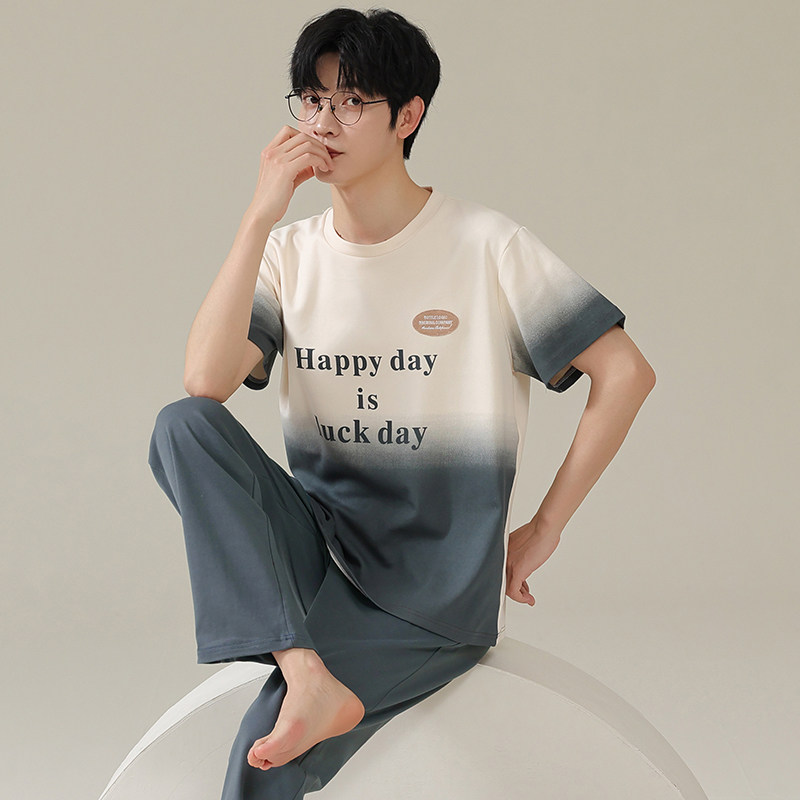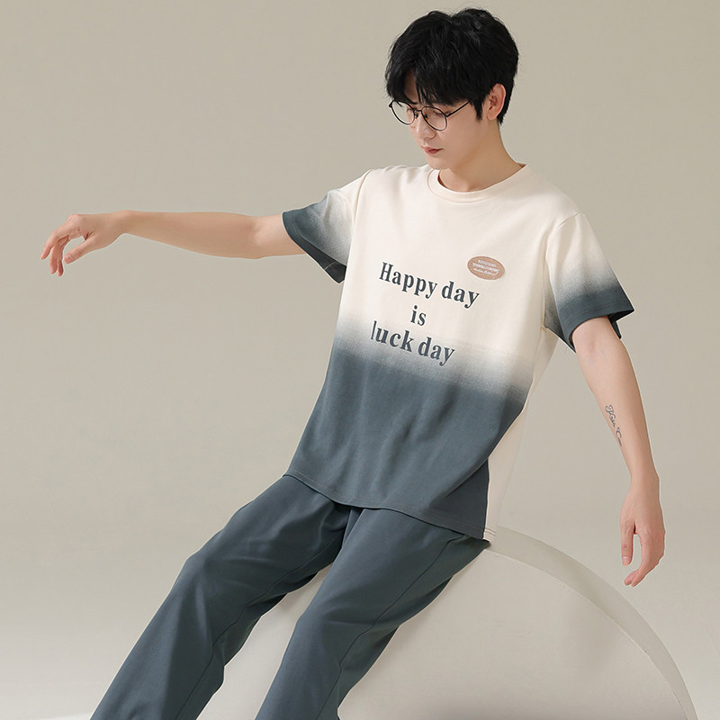 睡衣男士夏季天薄款纯棉新款短袖长裤简约青少年加大码家居服套装