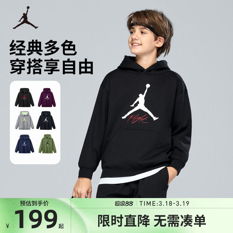 Jordan儿童装男童连帽卫衣2026春秋新款中大童女童卫衣上衣潮春装