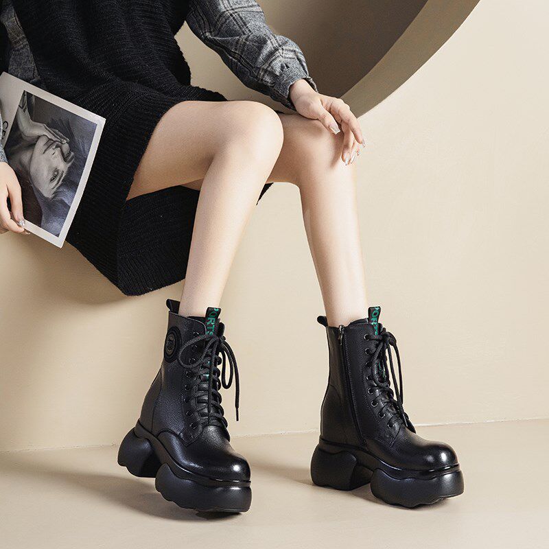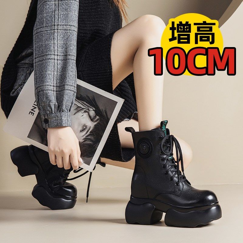 10cm厚底短靴头层牛皮真皮女鞋高跟单鞋棉鞋2N024新款内增高马丁