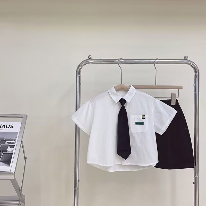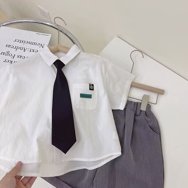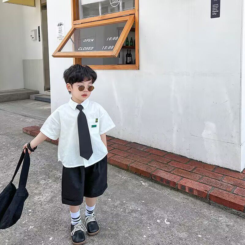 男童夏装套装2025新款夏季男孩宝宝学院领带短袖衬衫儿童礼服帅气