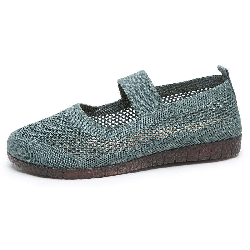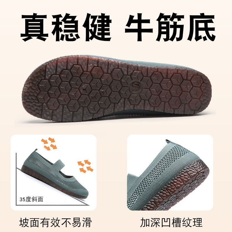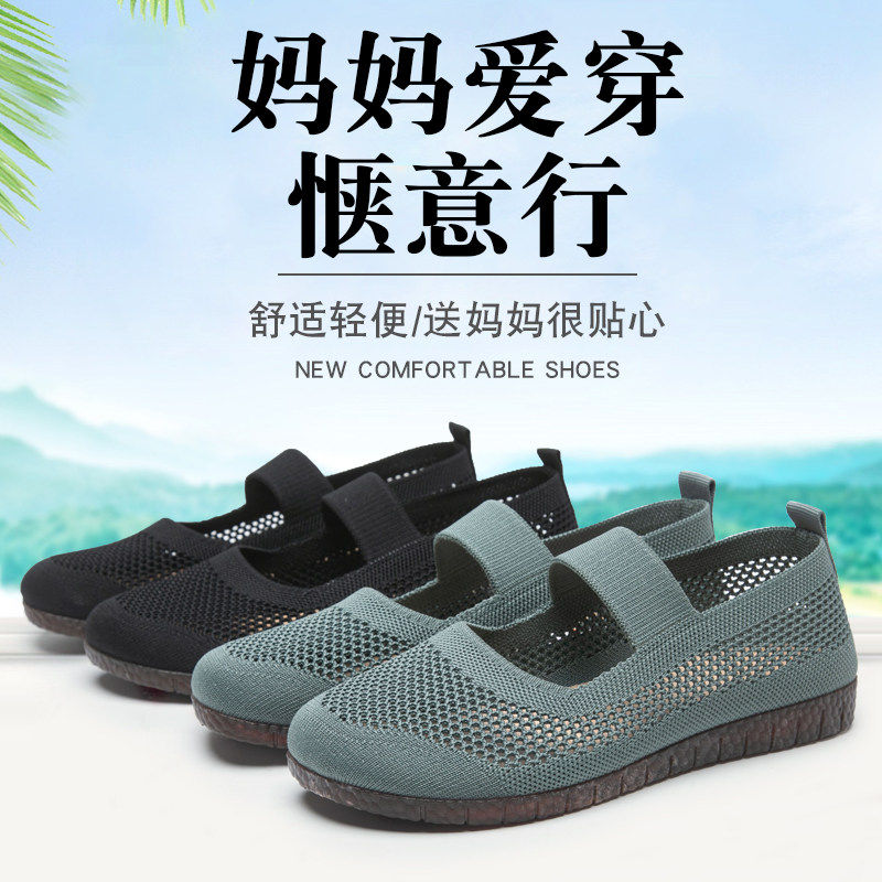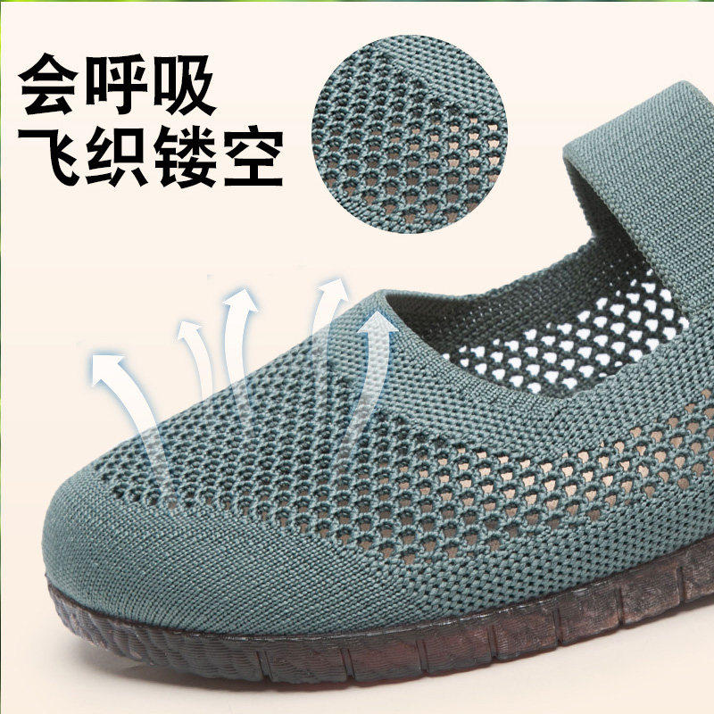 和韵祥夏季透气网面女鞋飞织镂空平底鞋软底防滑不闷脚黑色休闲鞋