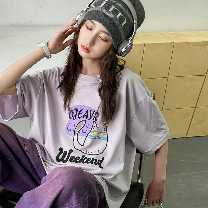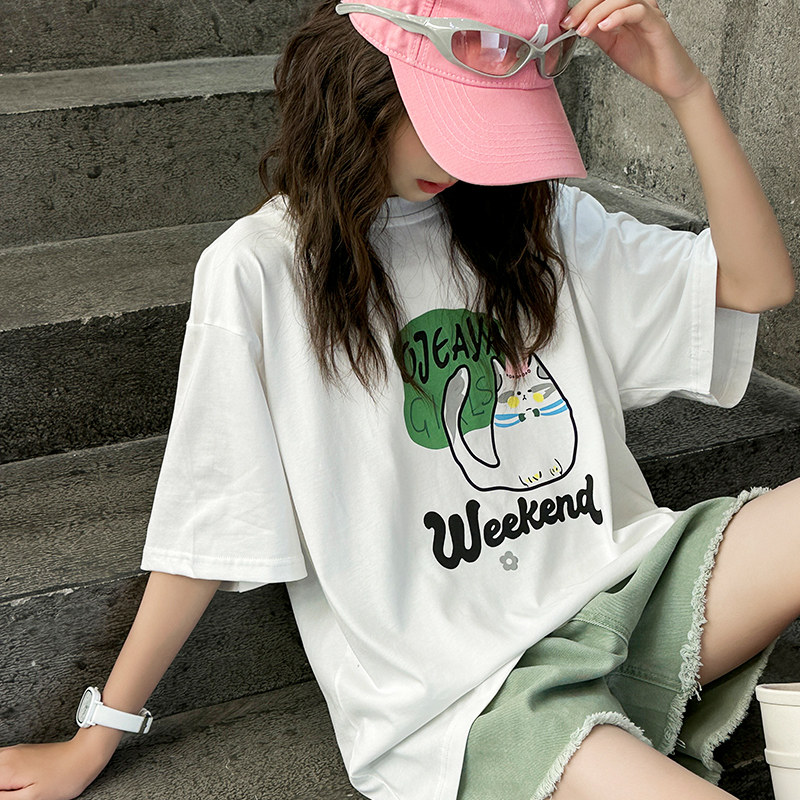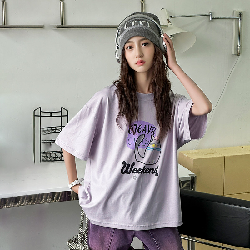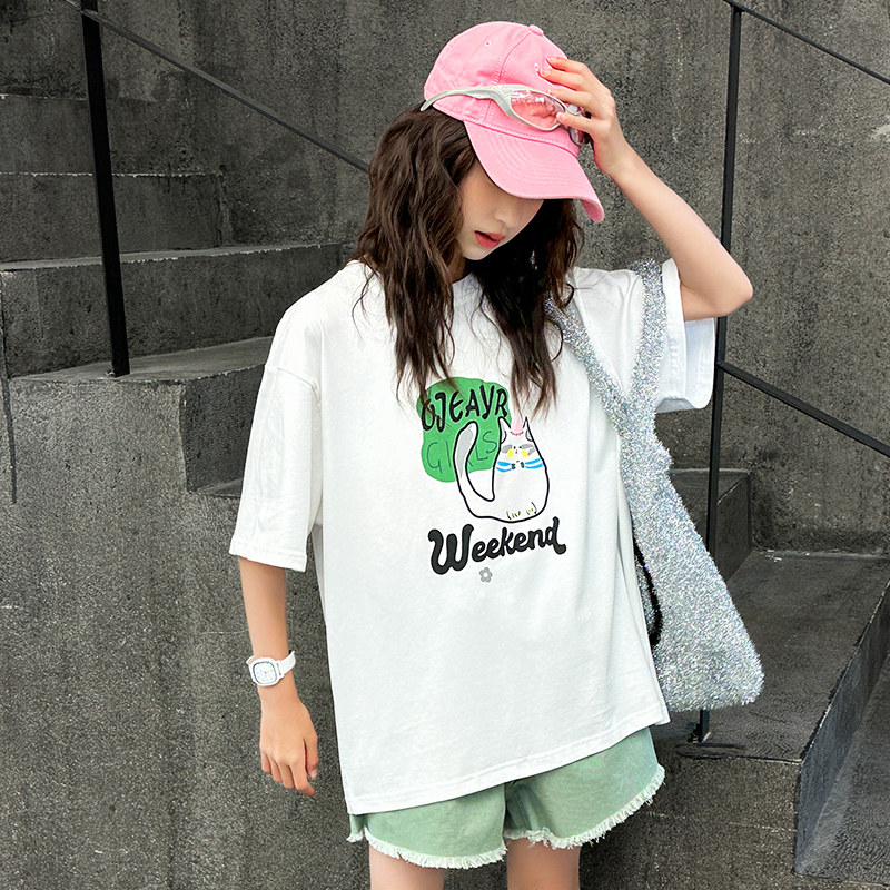 女大童t恤夏季2026新款夏装宽松纯棉印花短袖上衣初中生女孩潮牌