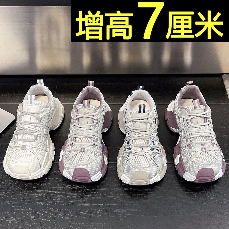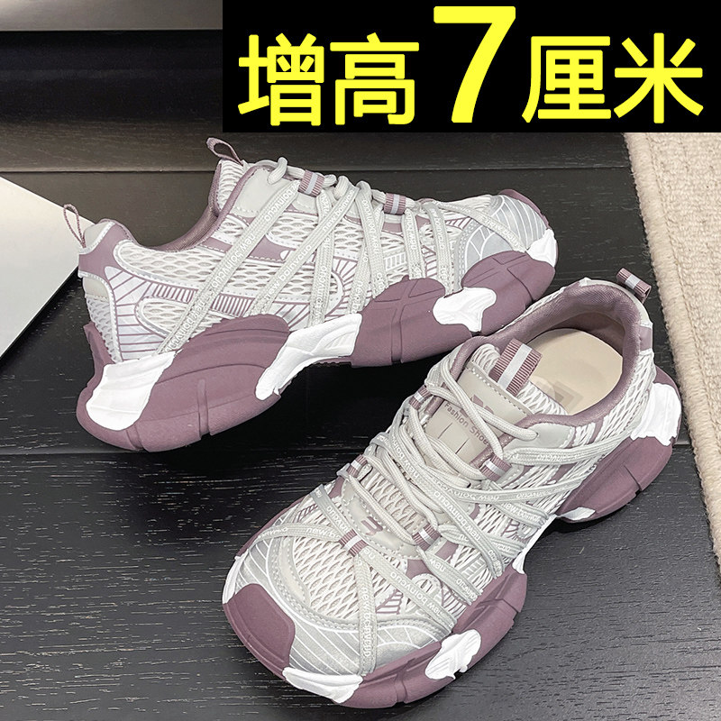 网面透气厚底老爹鞋女2026新款春季百搭内增高小白鞋休闲运动女鞋