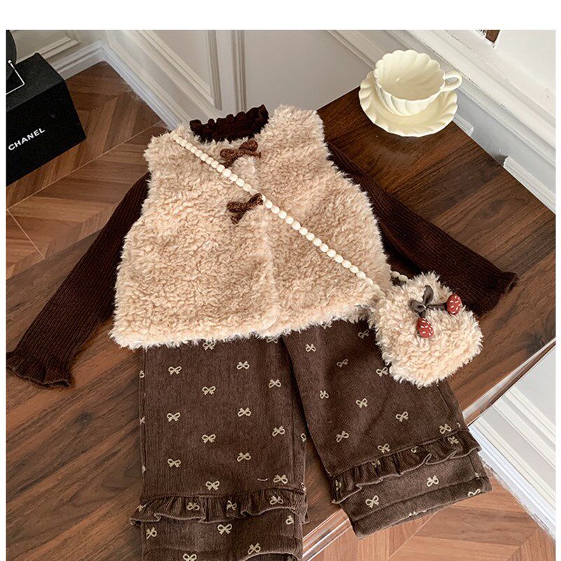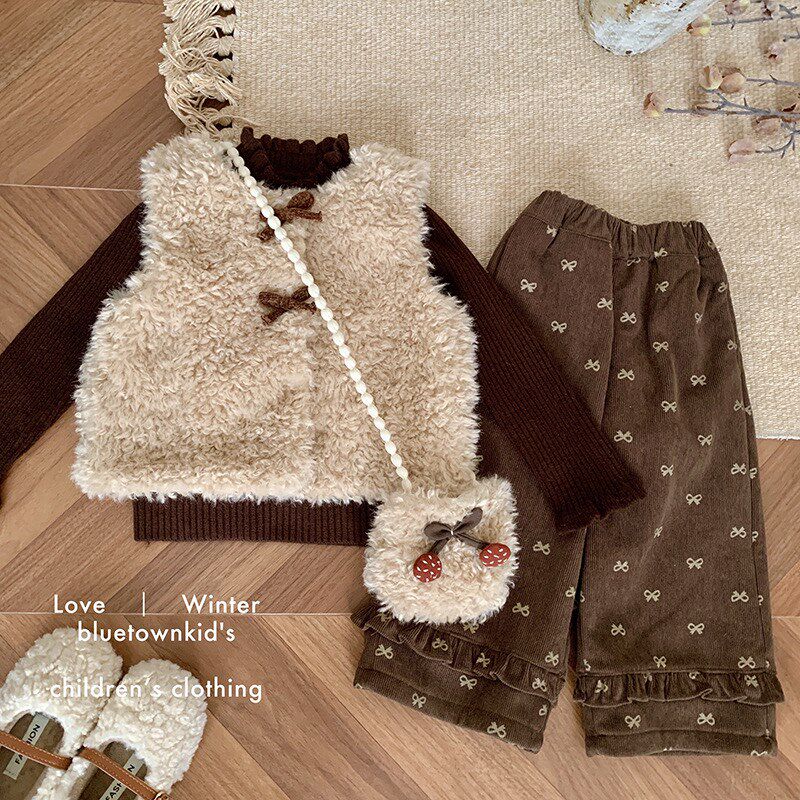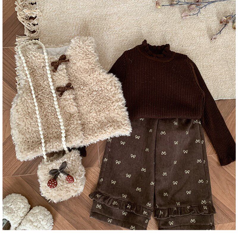 女童加绒网红套装秋冬新款洋气时髦夹棉马甲加厚毛衣裤子三件套潮