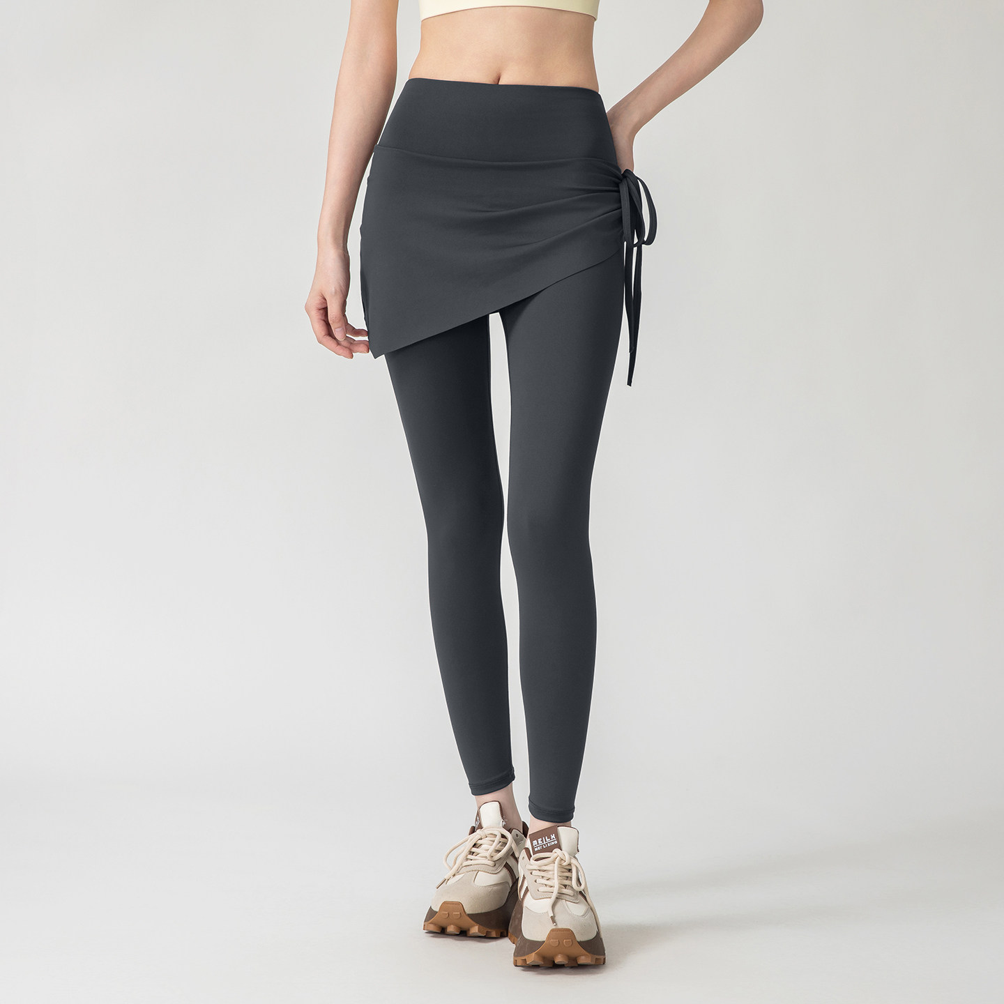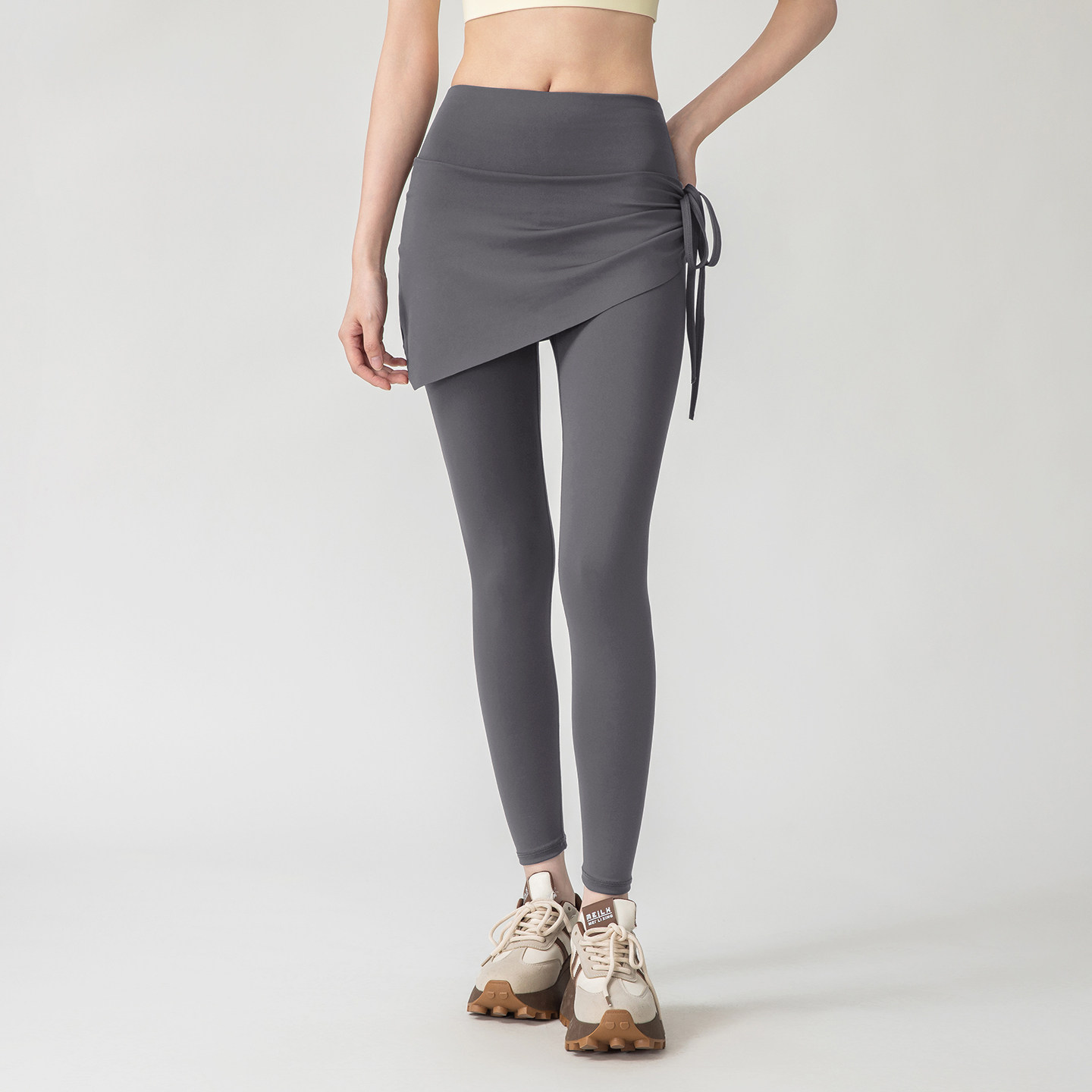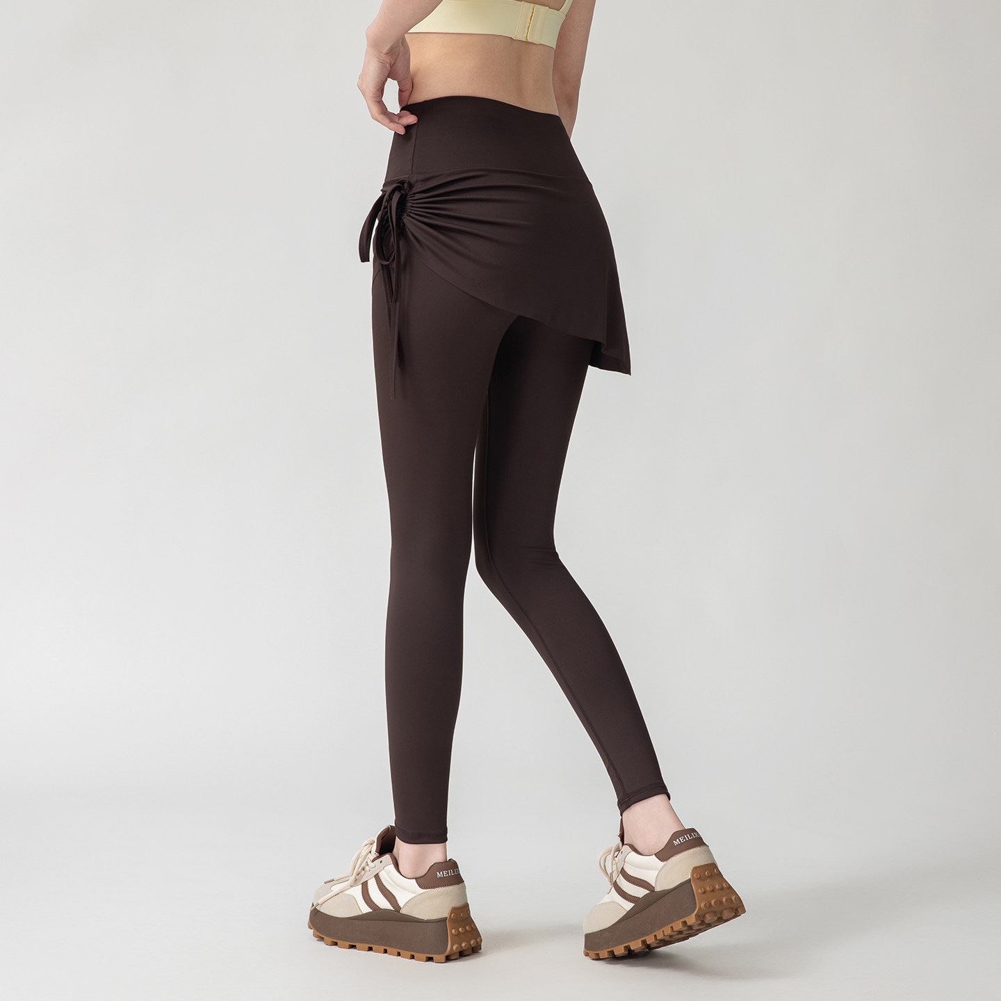 假两件瑜伽裤女训练跑步普拉提遮臀高弹压缩健身运动高腰抽绳速干