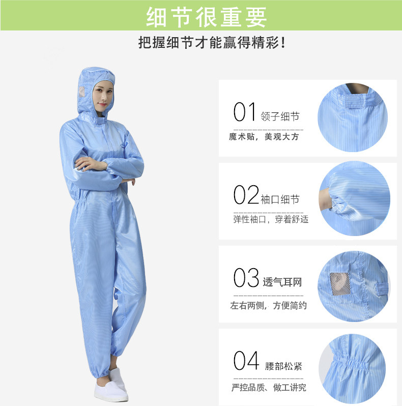 无尘服 防静电连体服连帽食品喷漆工作服带帽分体 防护防尘男女款