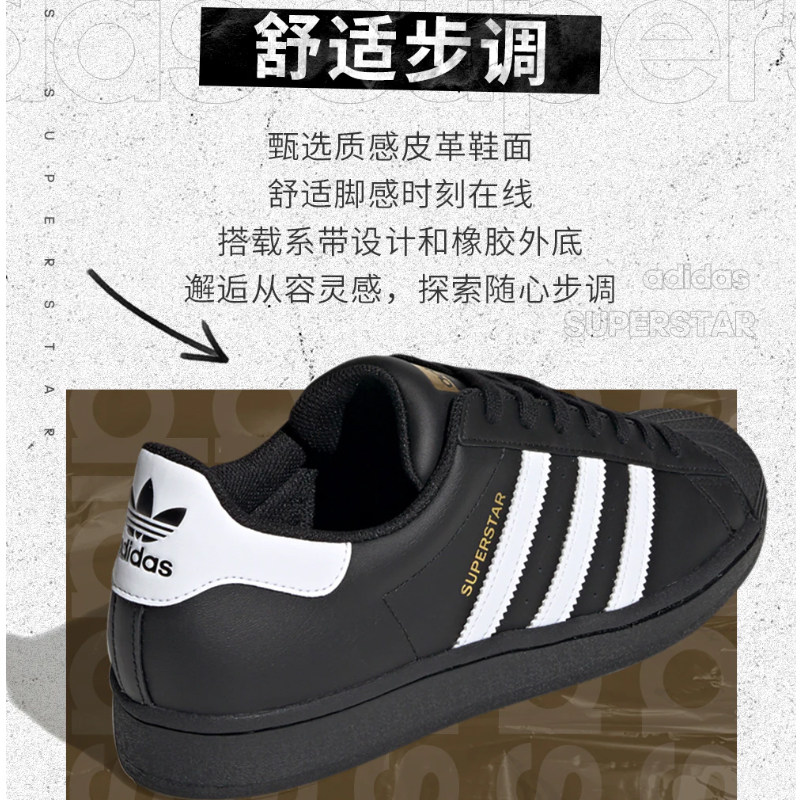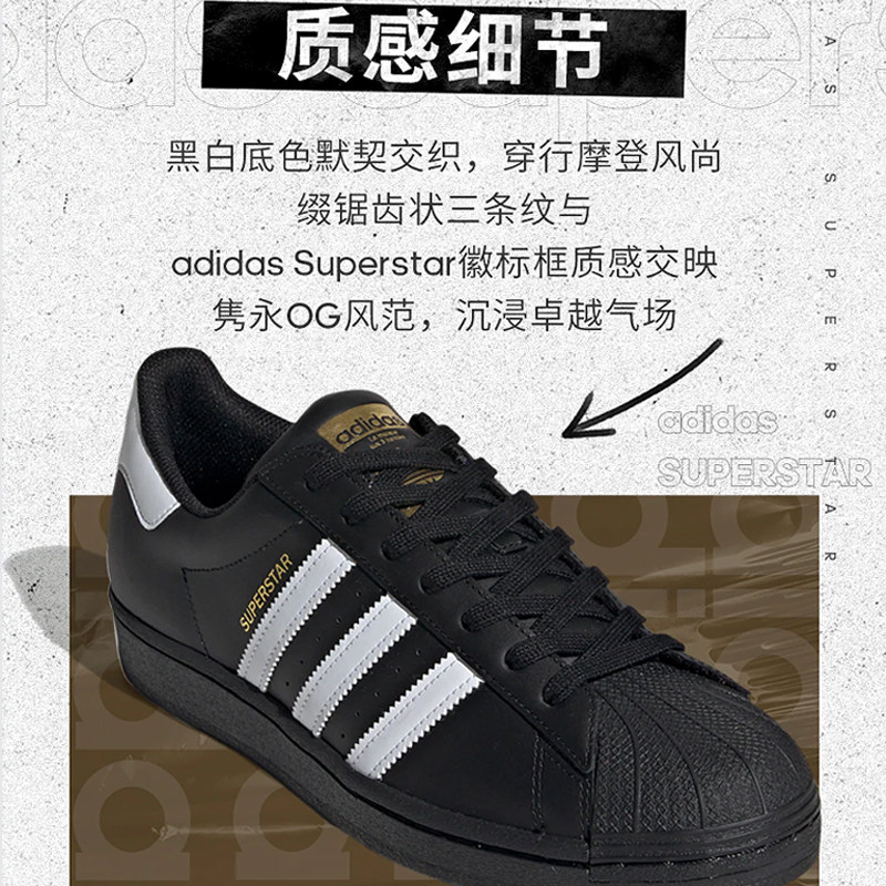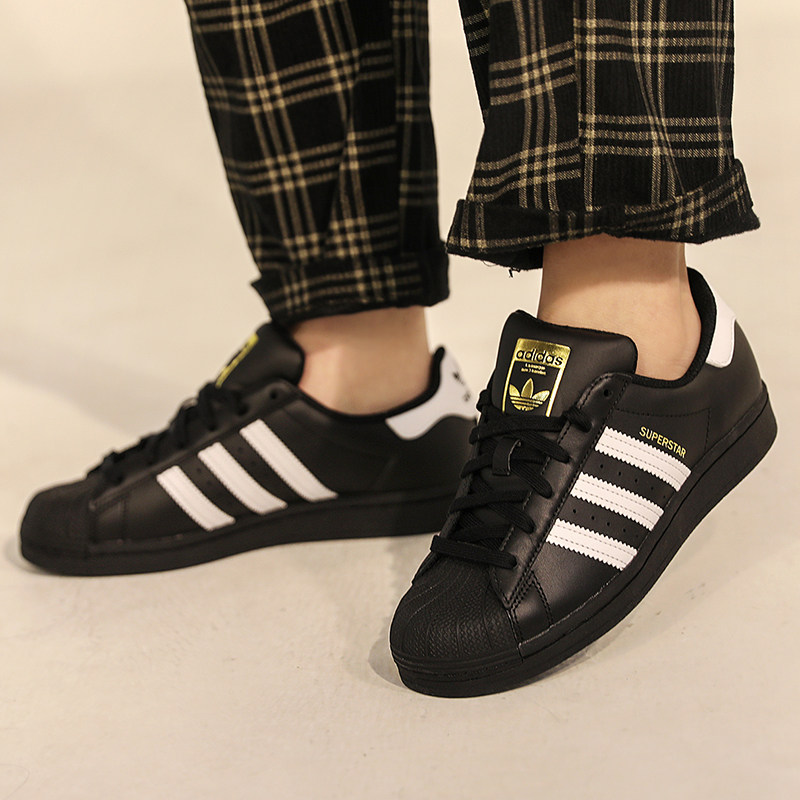 【自营】Adidas阿迪达斯三叶草男女鞋黑色金标贝壳头休闲鞋板鞋