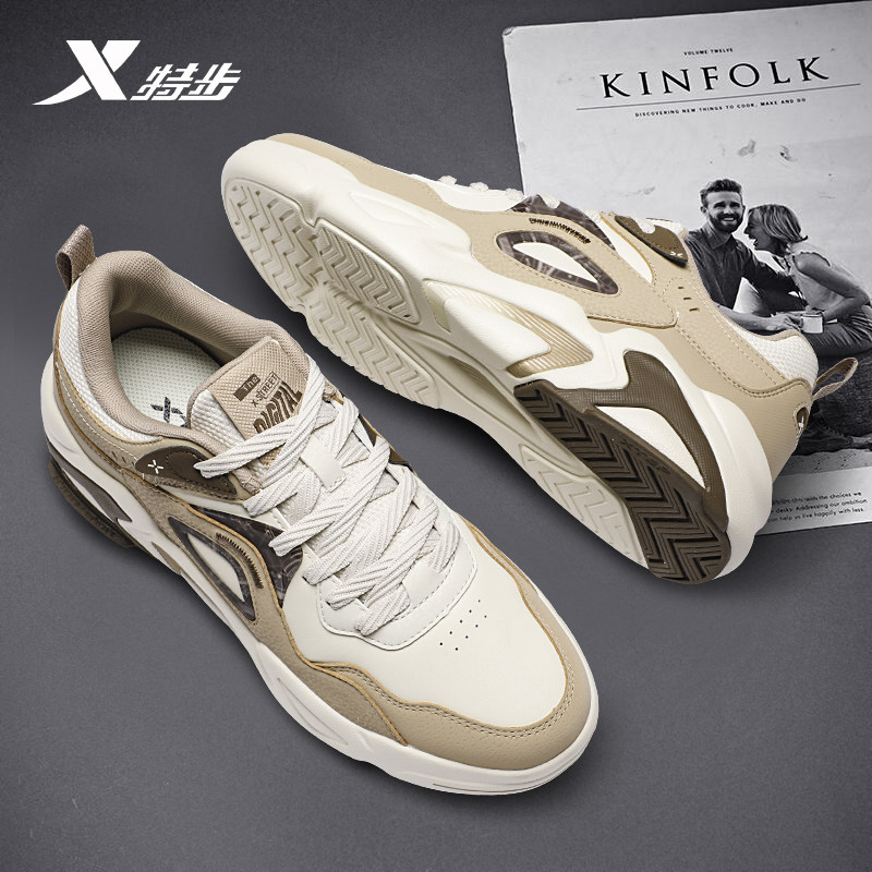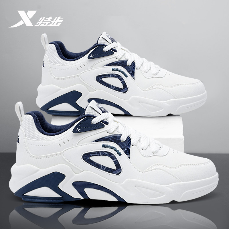 特步男鞋官方正品潮流百搭休闲鞋2026新款青少年皮面防水板鞋男款