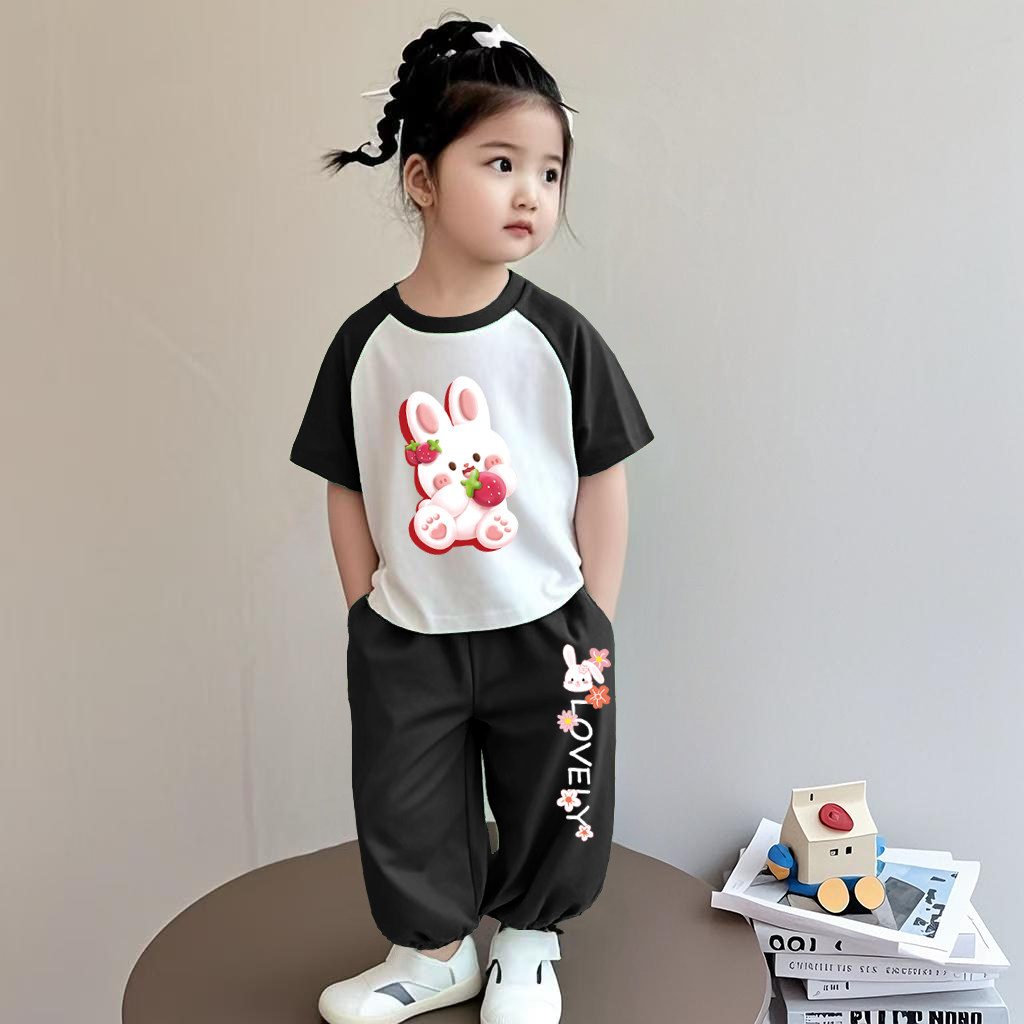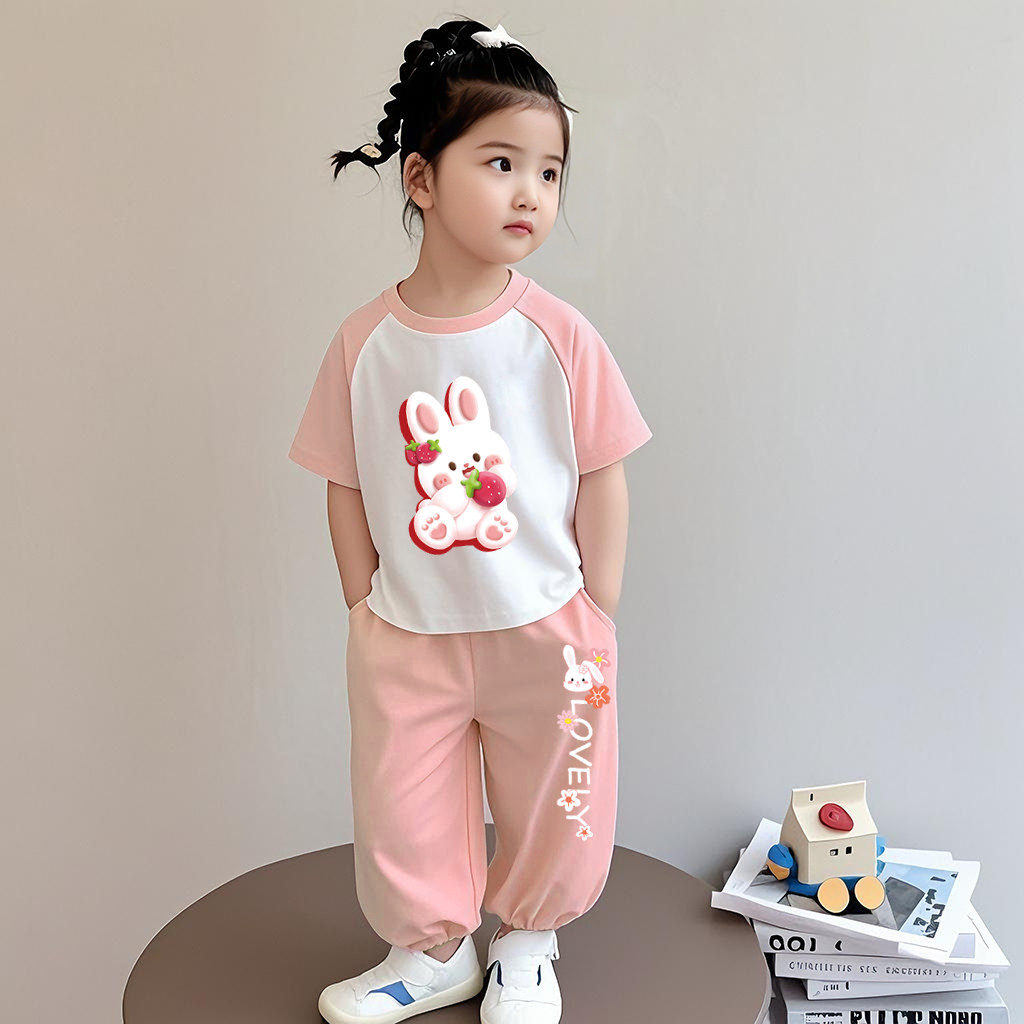 儿童纯棉夏装套装女童2026新款女宝宝外出炸街短袖休闲运动两件套