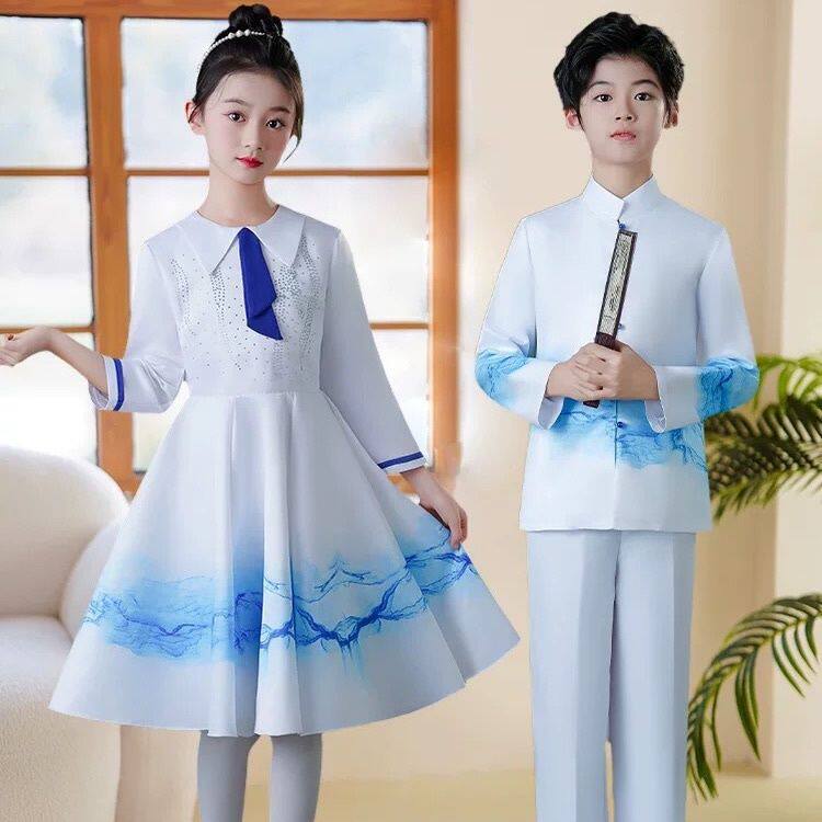 元旦儿童合唱演出服中小学生诗歌朗诵表演服装男女童演讲比赛礼服