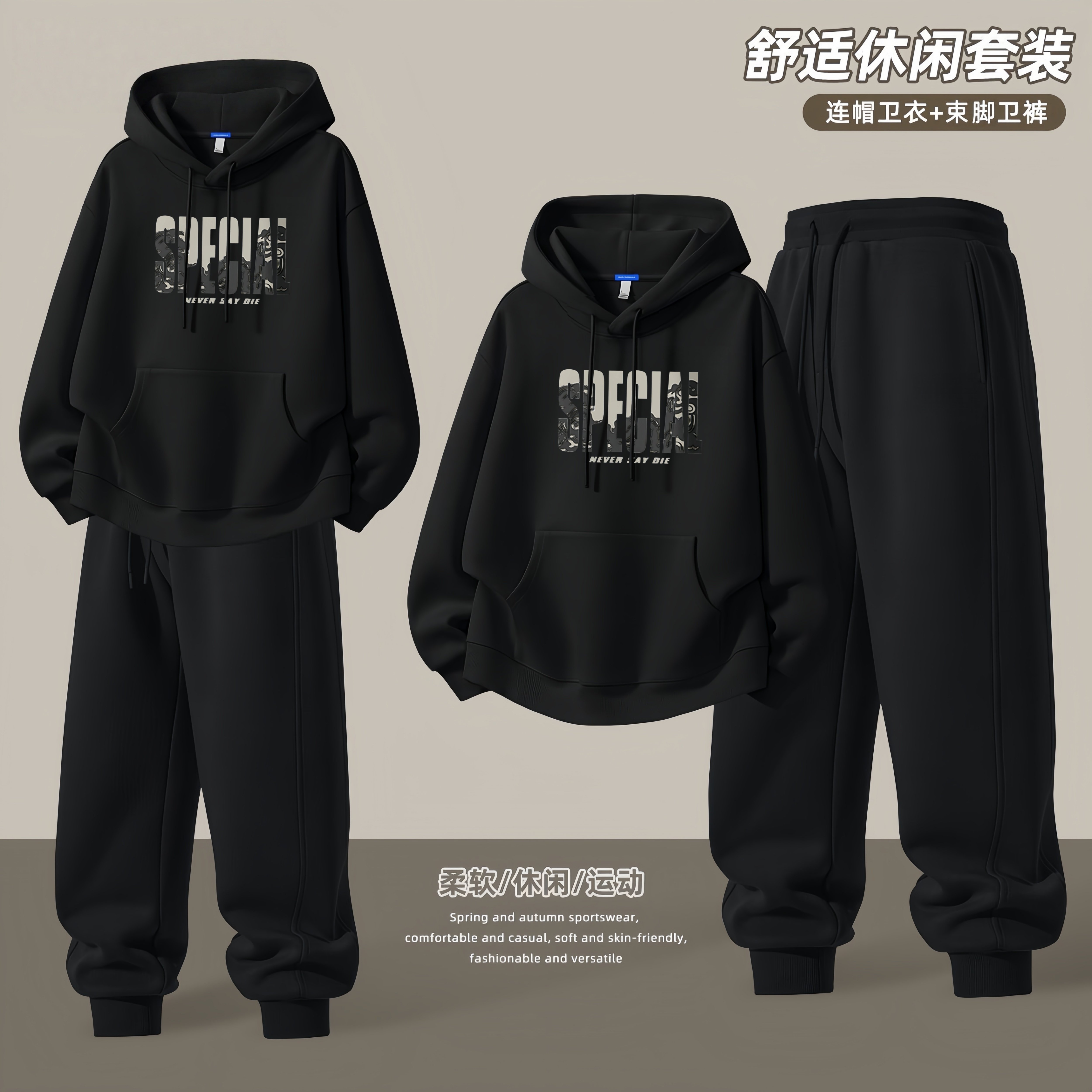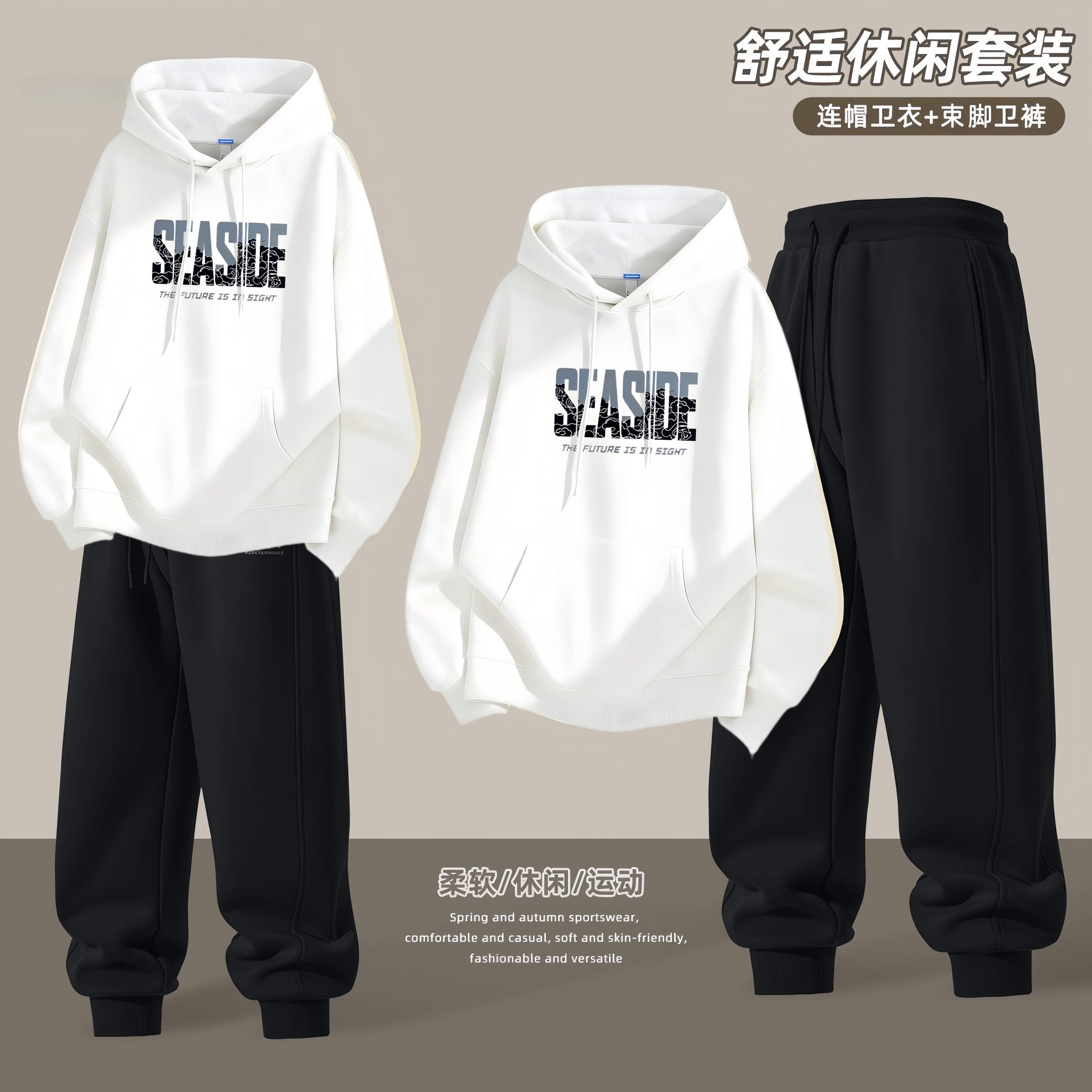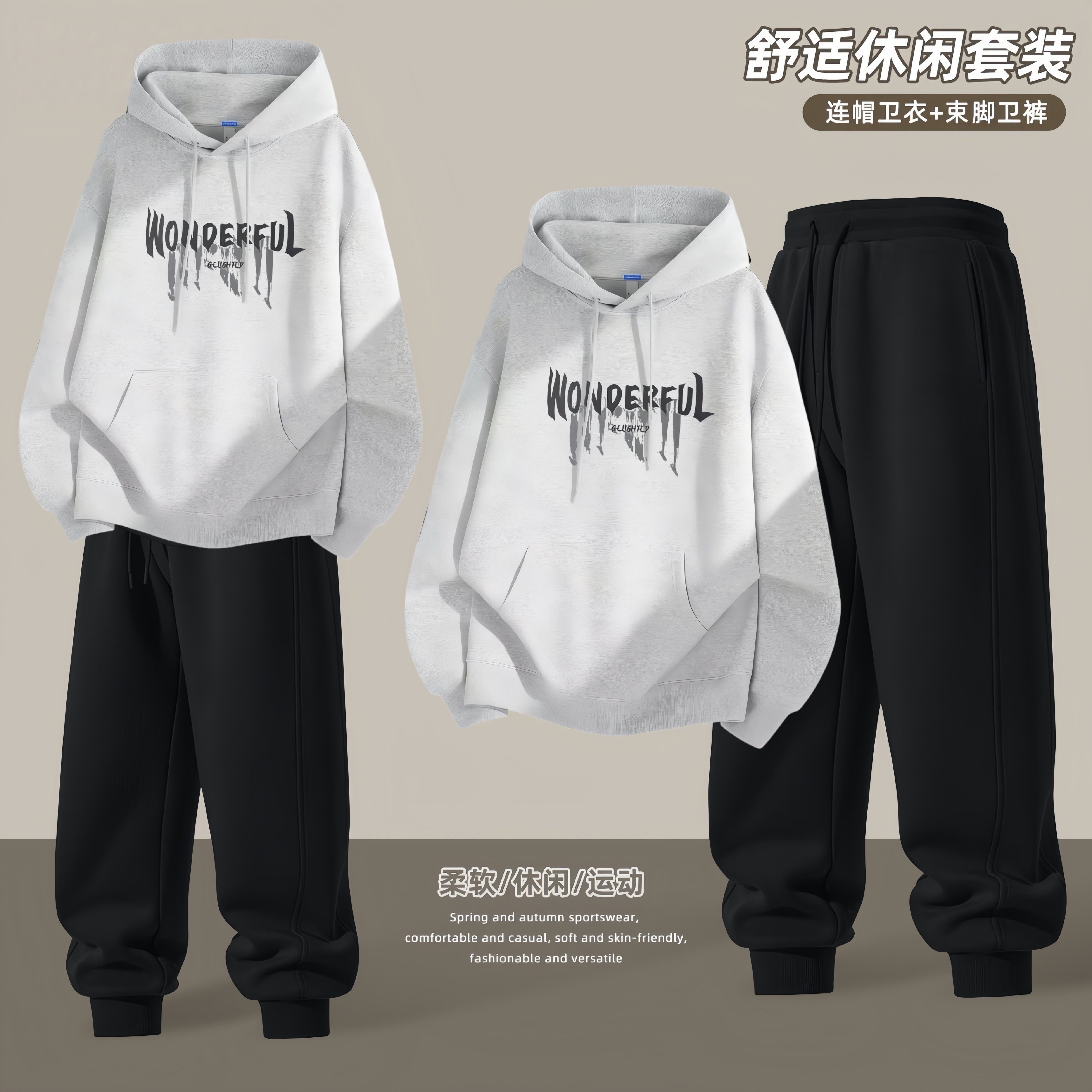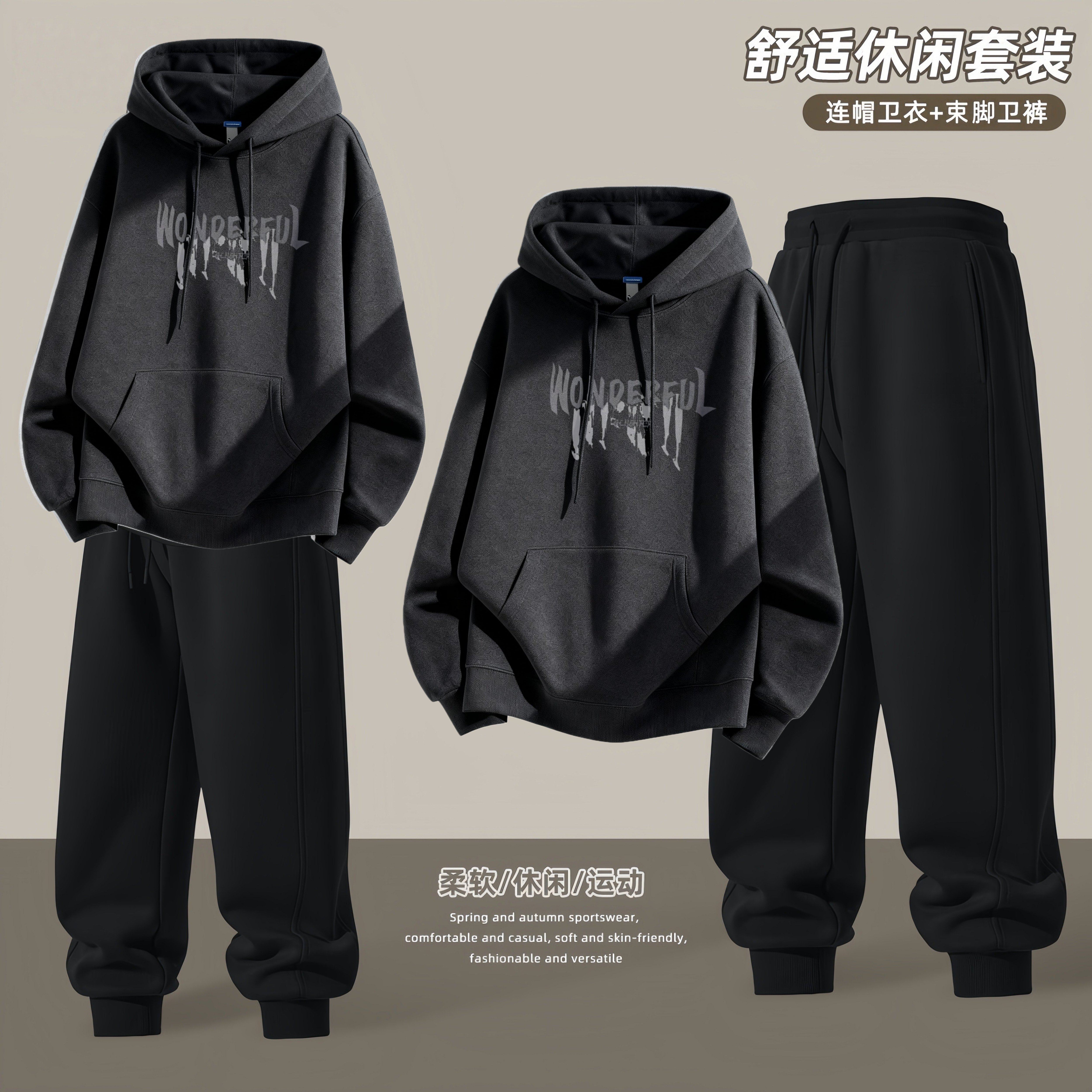 青少年连帽卫衣外套男士2026新款春秋季潮流帅气高初中学生一套装