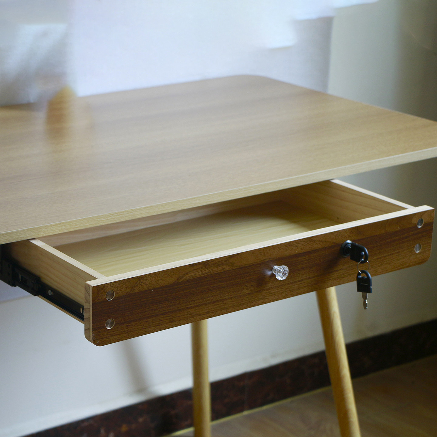 桌子下有横梁横杠实木抽屉悬挂式滑轨收纳盒柜内桌底装带锁暗抽屉