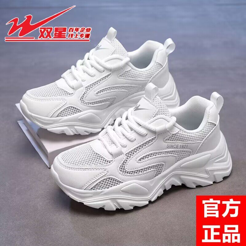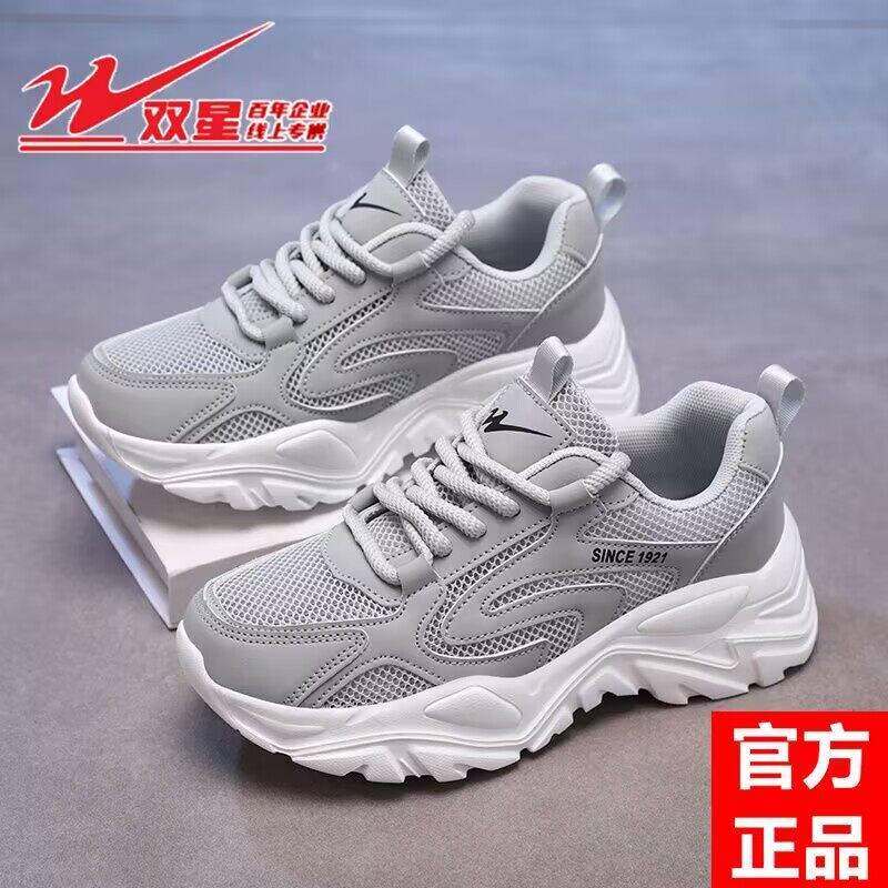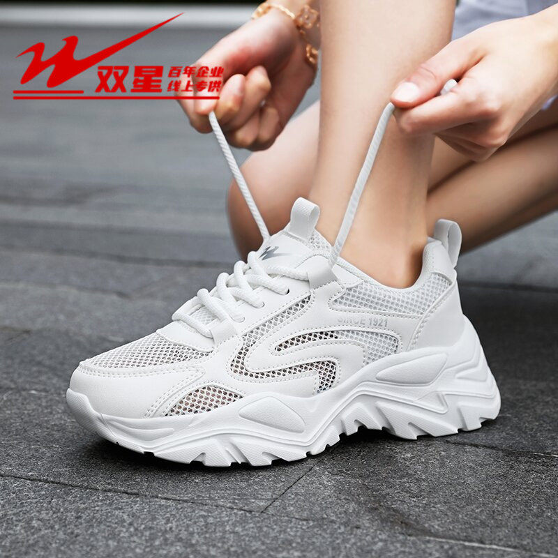 双星女鞋厚底老爹鞋女夏季薄款透气网面运动鞋镂空单网跑步鞋百搭