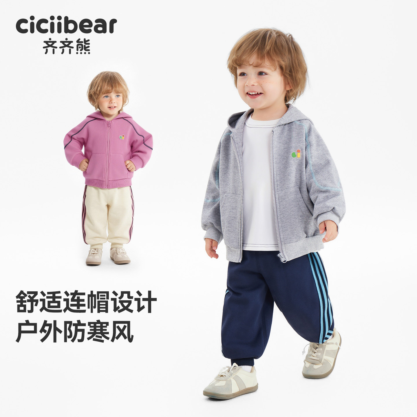 [精棉双面]齐齐熊宝宝卫衣连帽外套男童女童春款2026新款儿童上衣