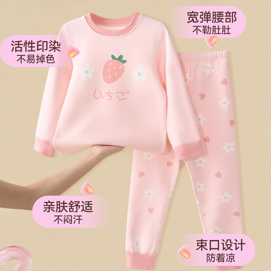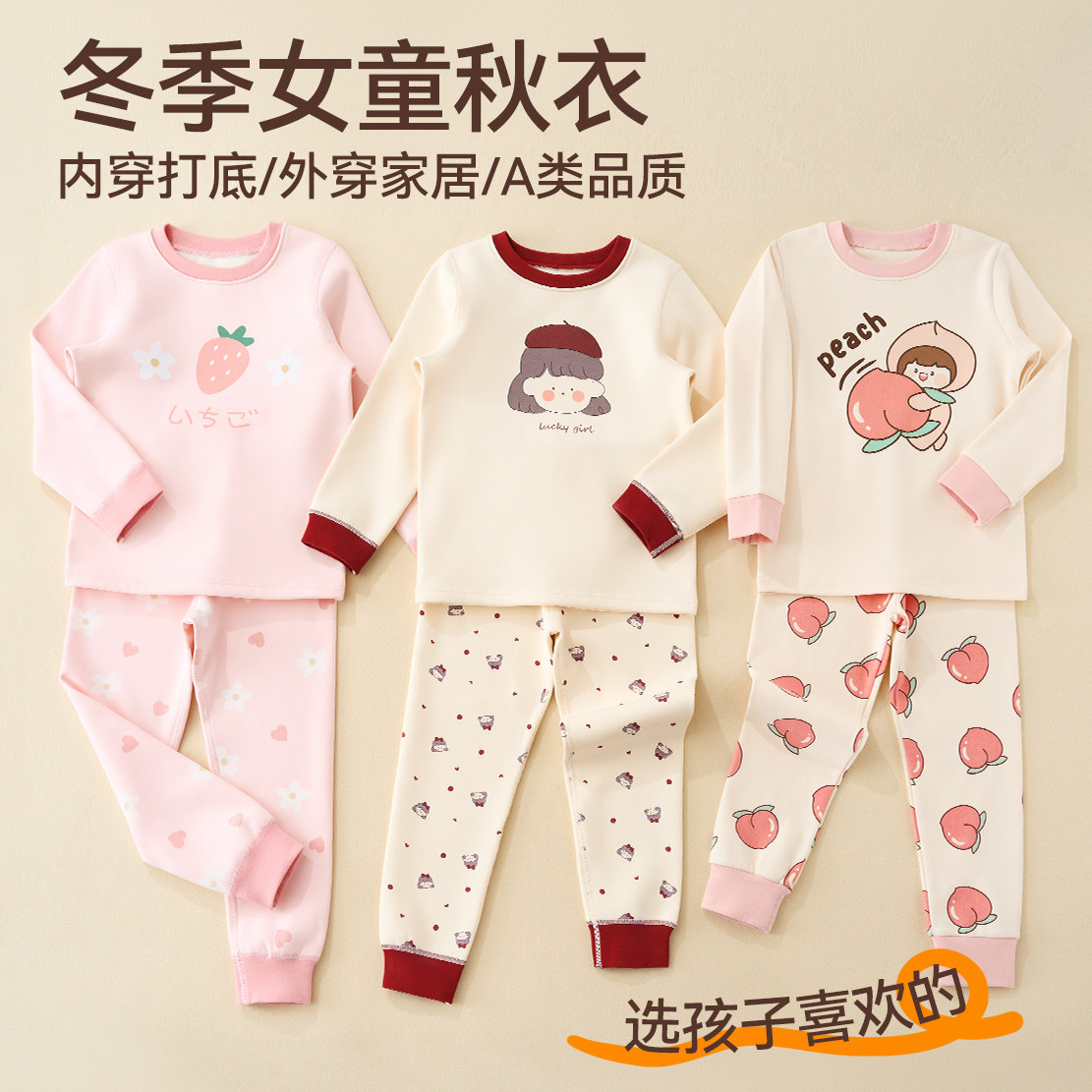 儿童秋衣秋裤全棉秋冬季女童加绒秋衣套装纯棉加厚保暖内衣棉毛衫