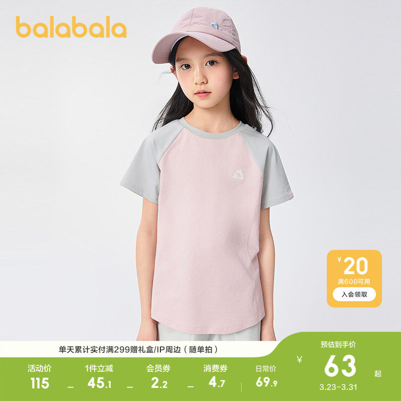 巴拉巴拉童装儿童短袖t恤女童轻薄款夏速干防晒内搭休闲百搭上衣