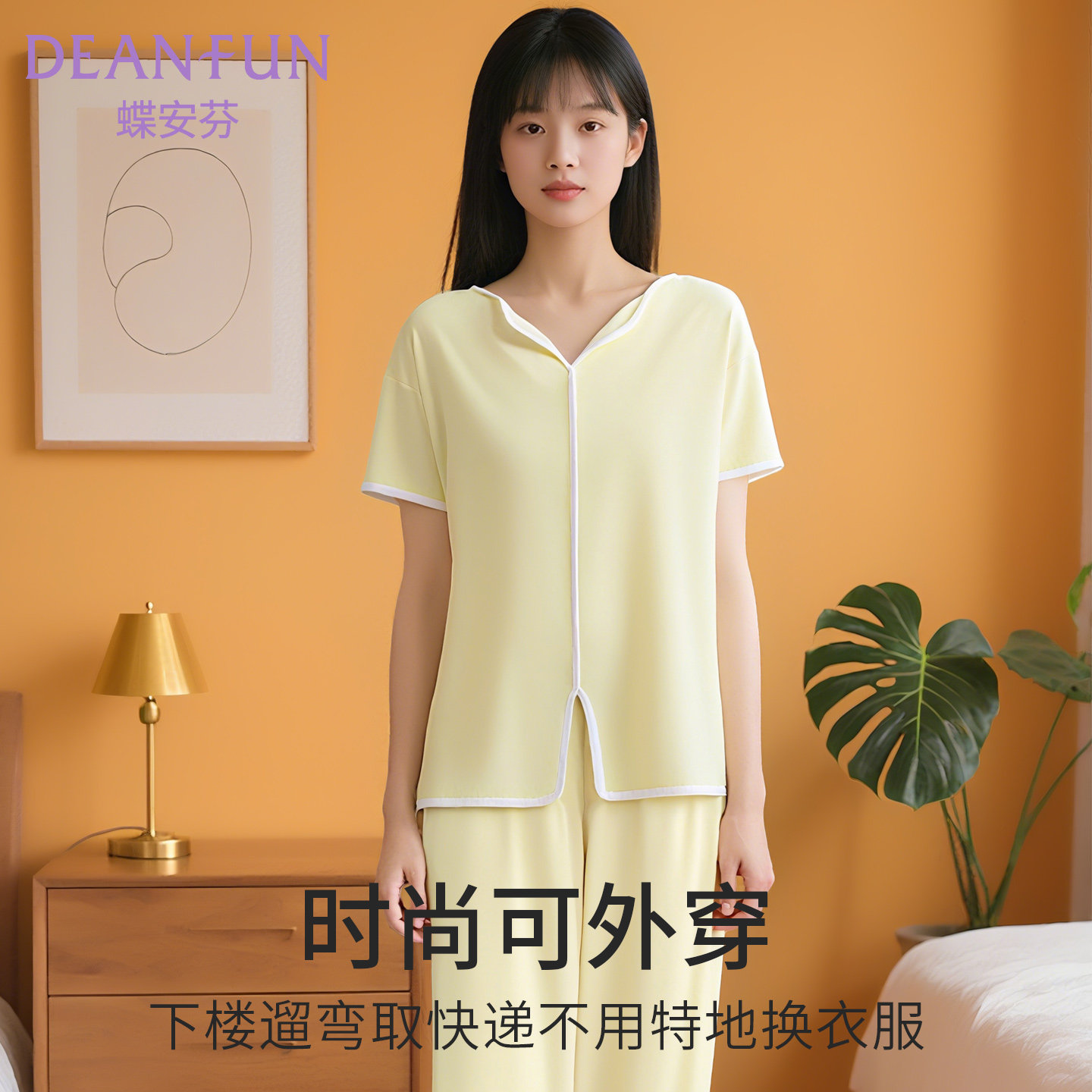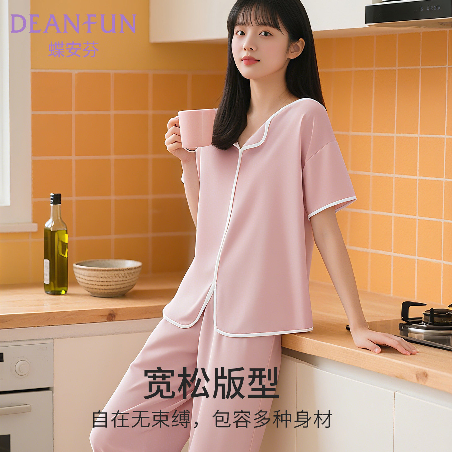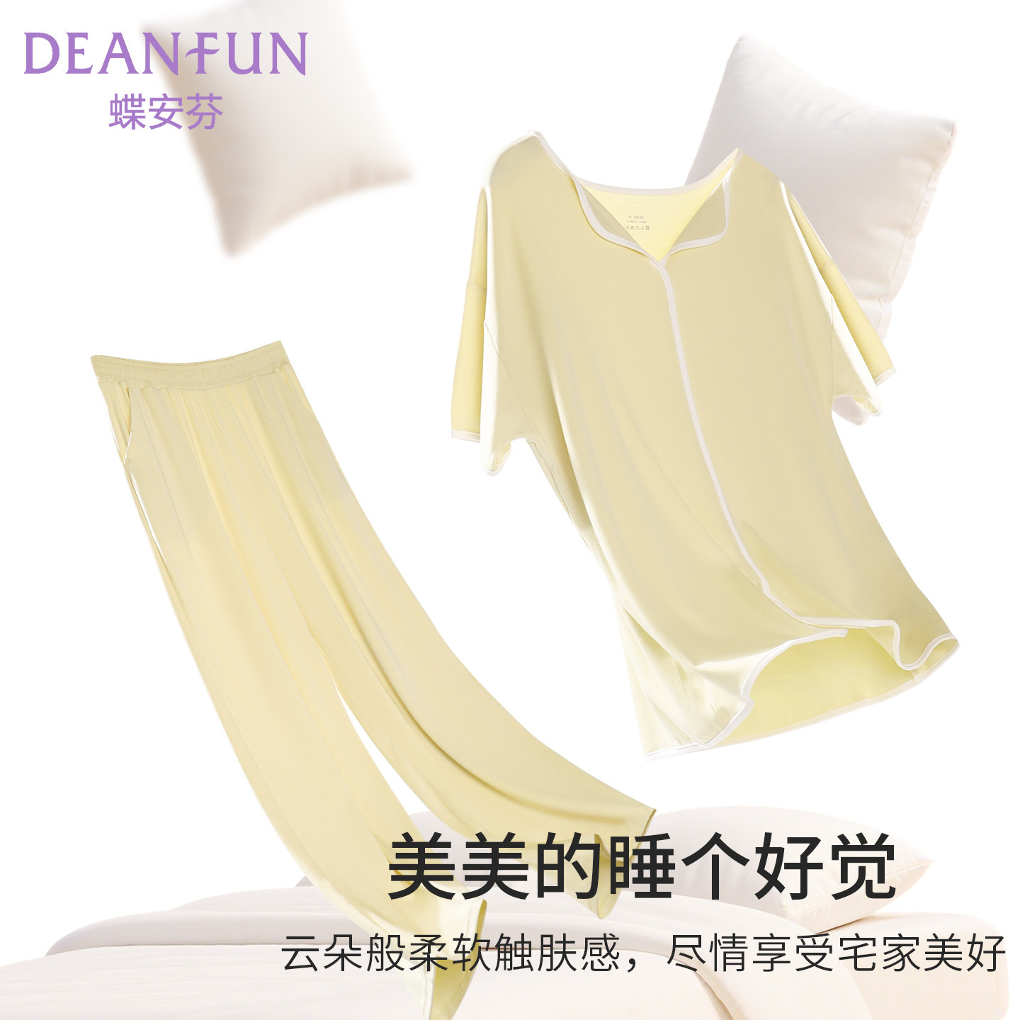 蝶安芬莫代尔睡衣女款2026新款夏小翻领上衣长裤家居服套装可外穿