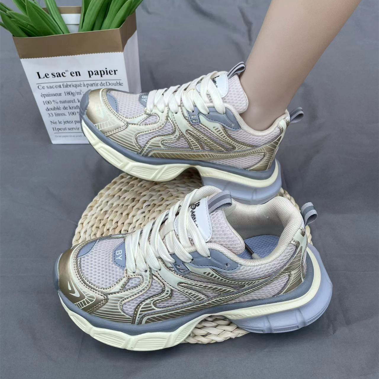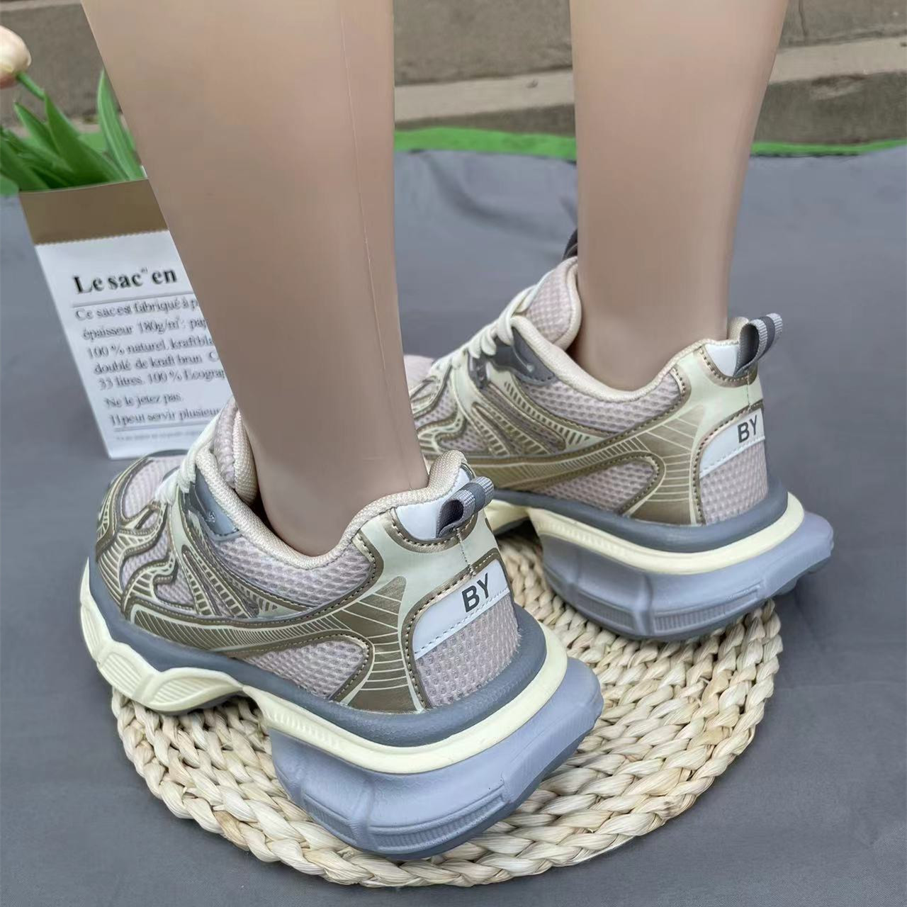 男鞋网面厚底高级感老爹鞋情侣百搭春秋2025新款透气增高运动鞋女