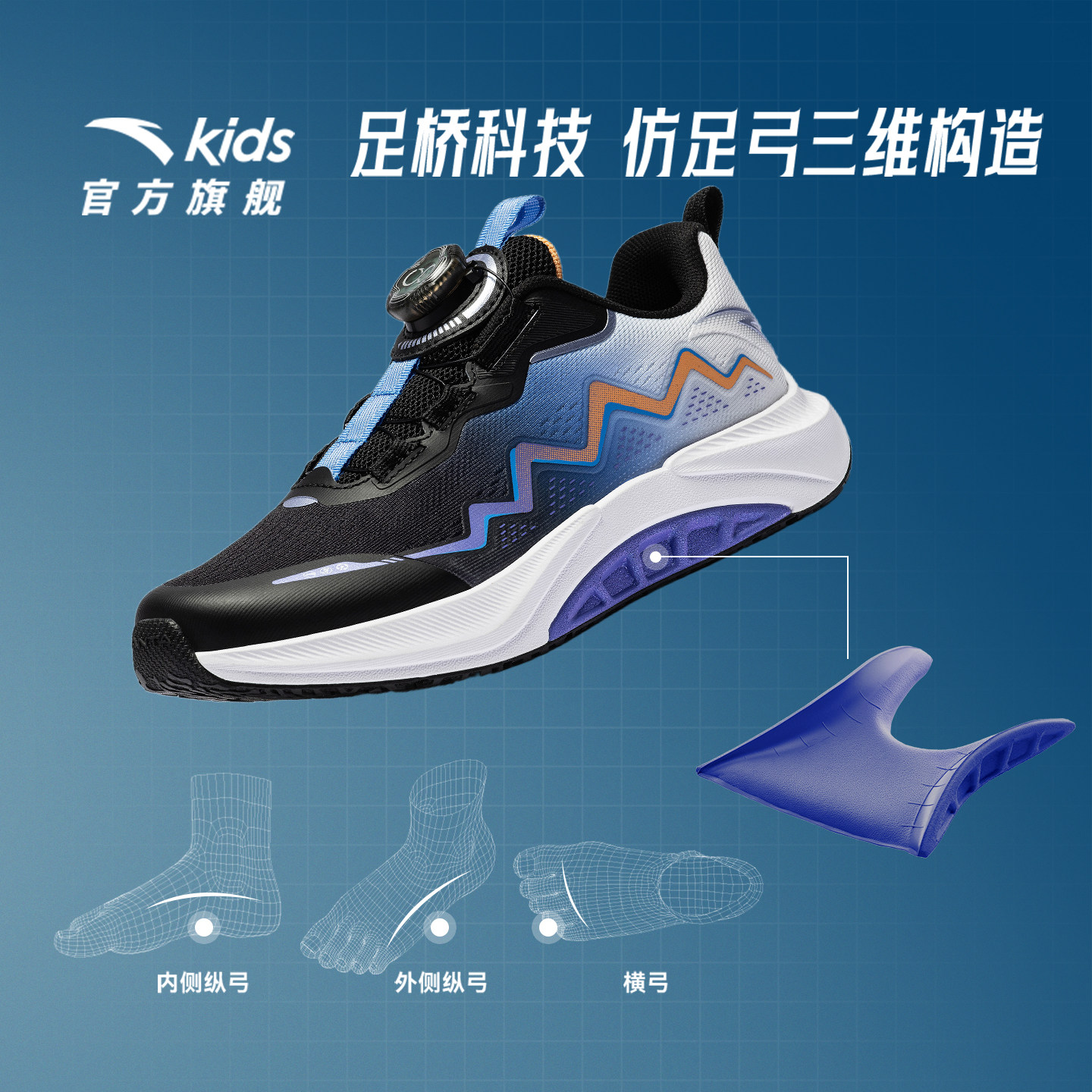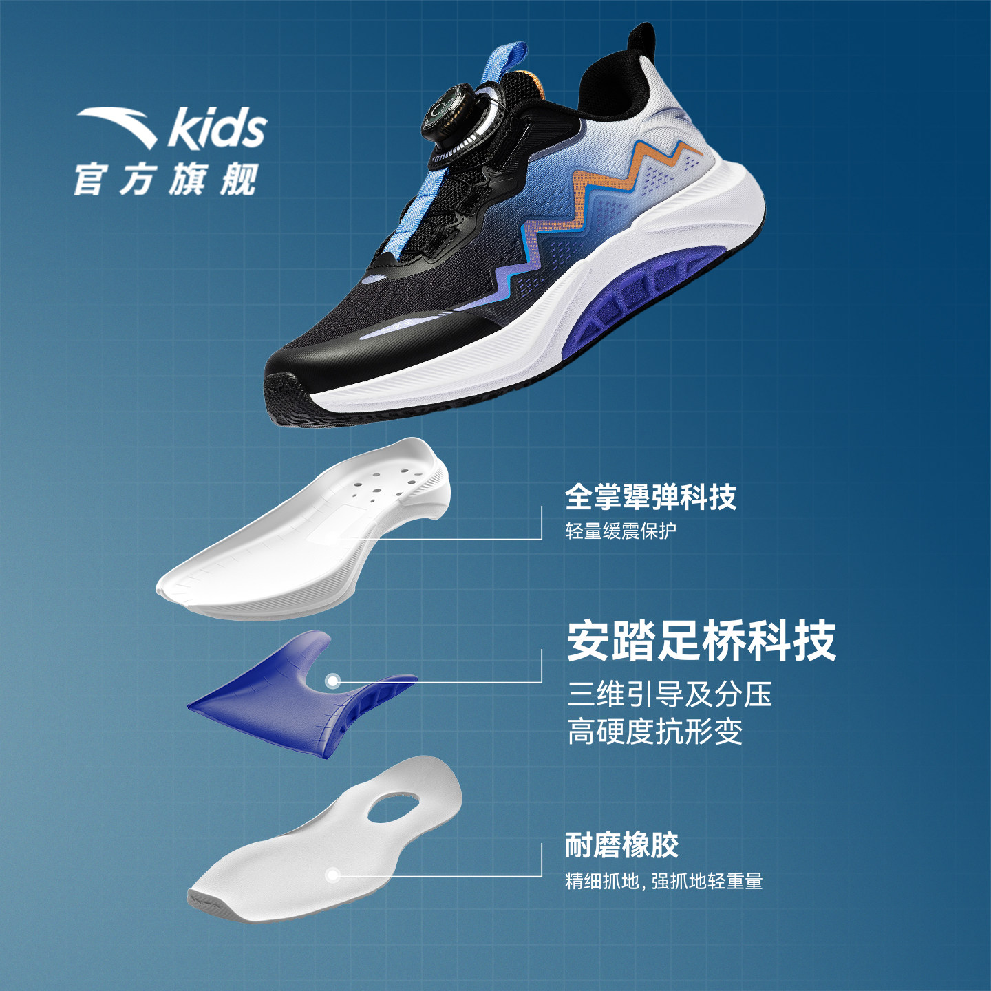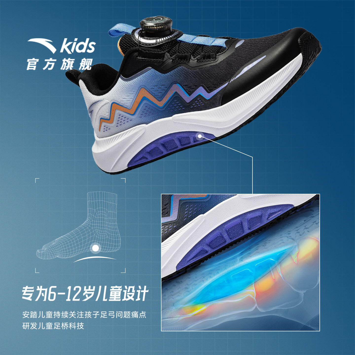 安踏足弓|童鞋男大童跑鞋2026年春季新款儿童跑步运动鞋旋钮鞋子