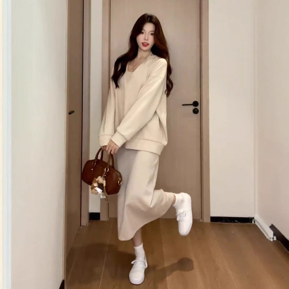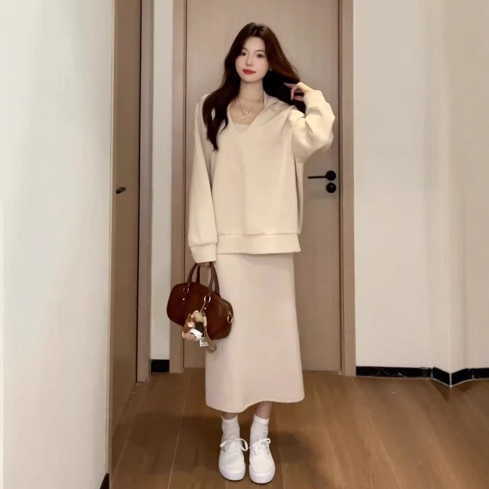小个子卫衣女款2026新款秋季韩系连衣裙设计显瘦收腰一整套装
