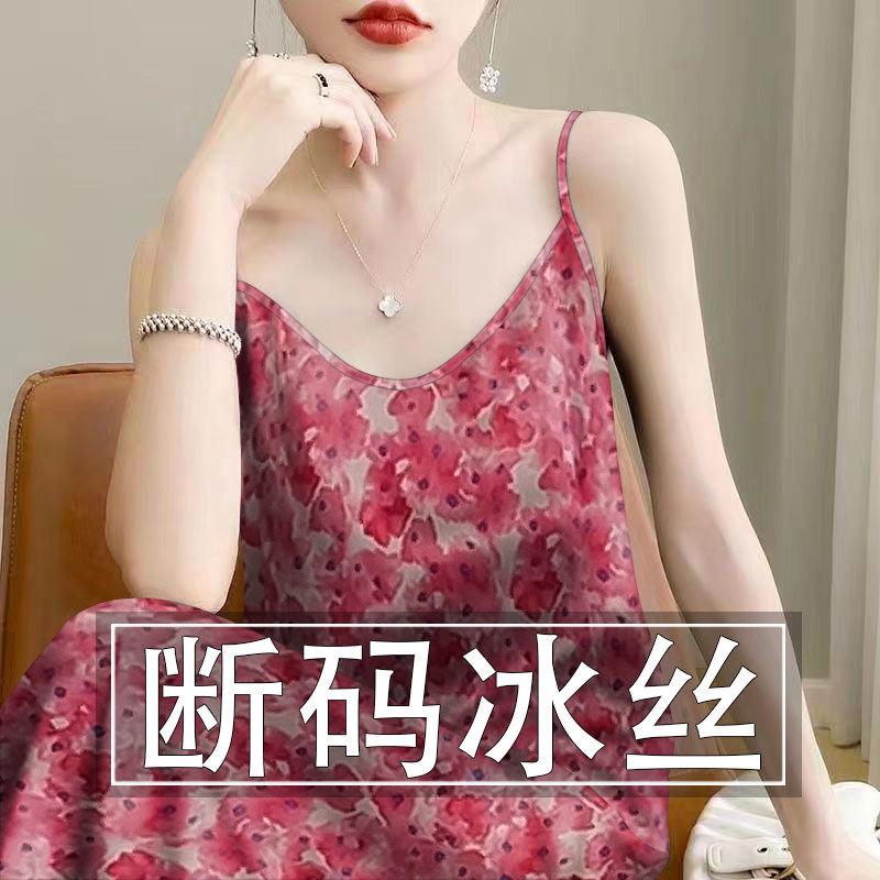清仓捡漏~夏季新款碎花冰丝吊带裙气质女中长款减龄遮肚连衣裙