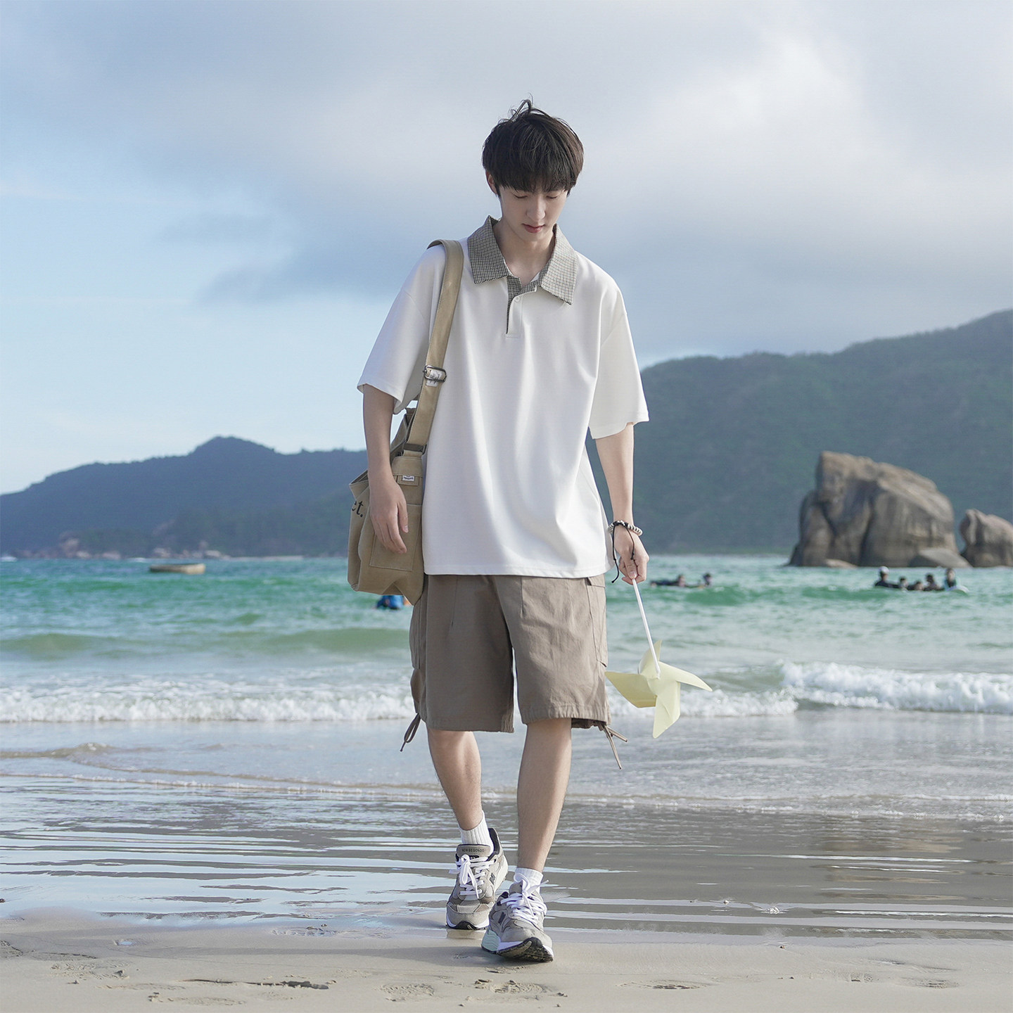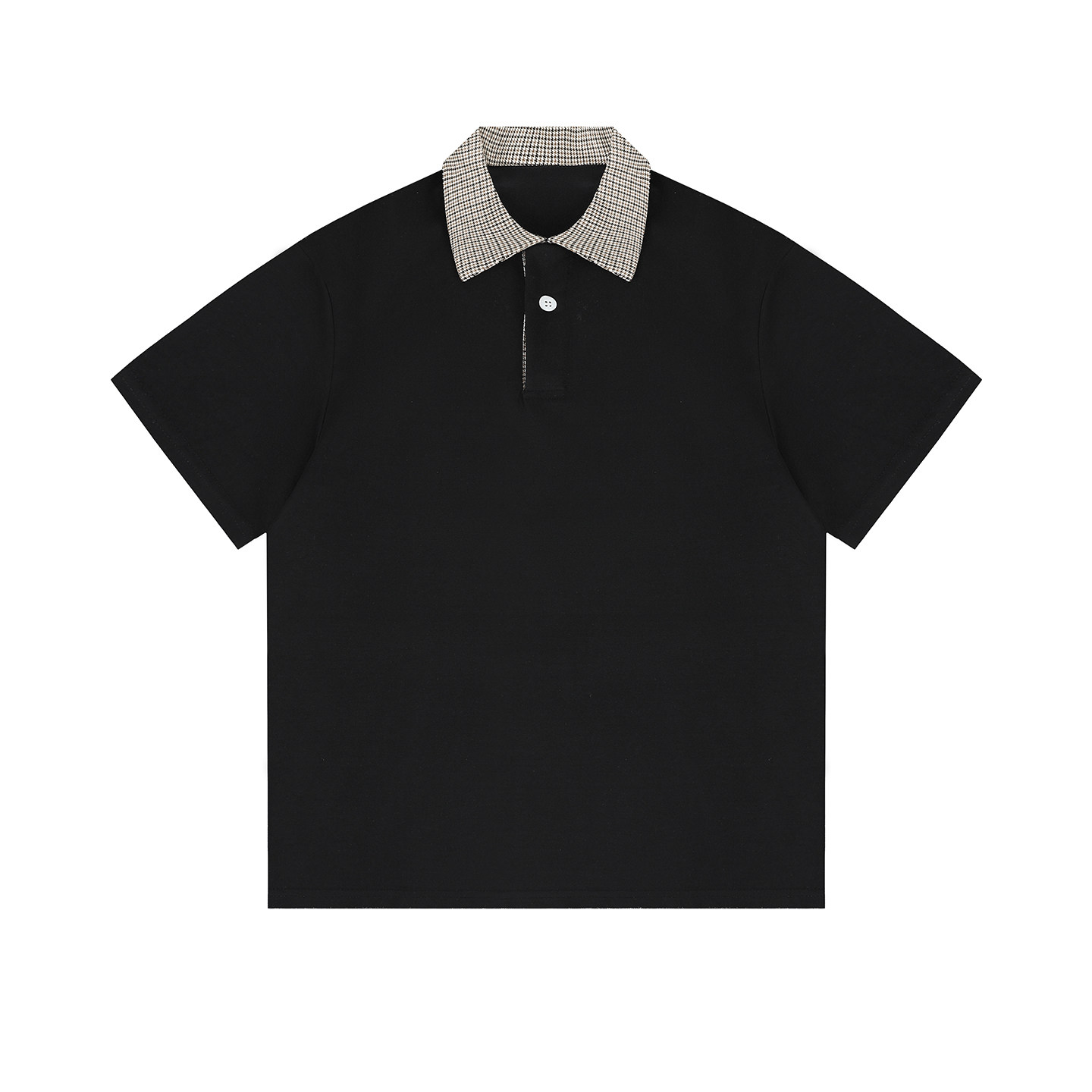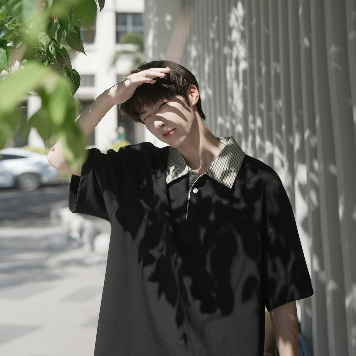 GOOZI MADE 格子翻领短袖T恤男款夏季美式青少年半袖POLO衫上衣服