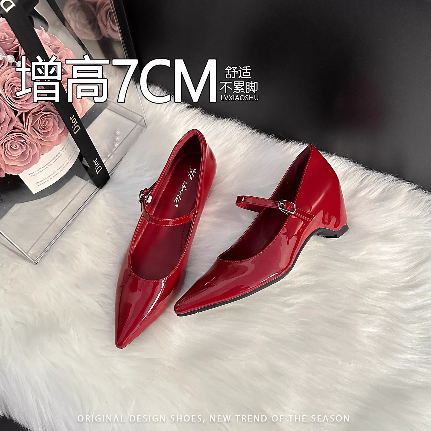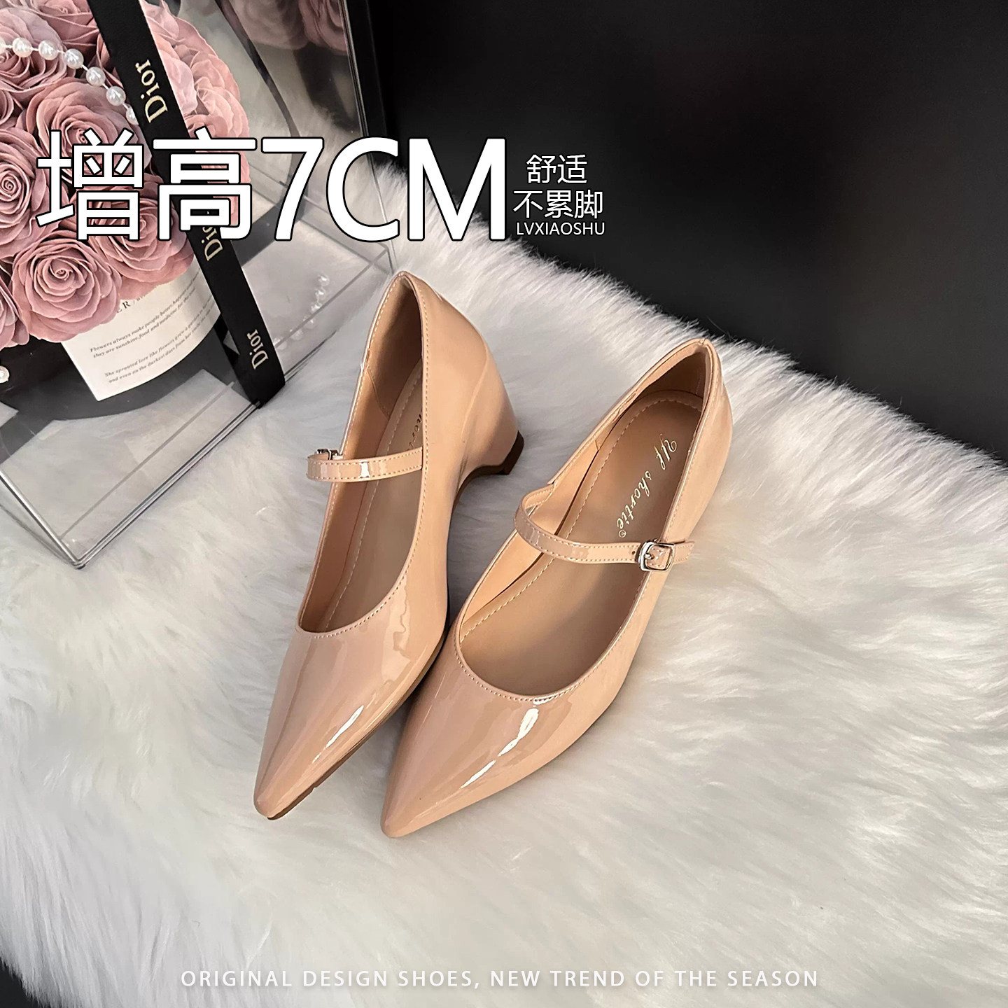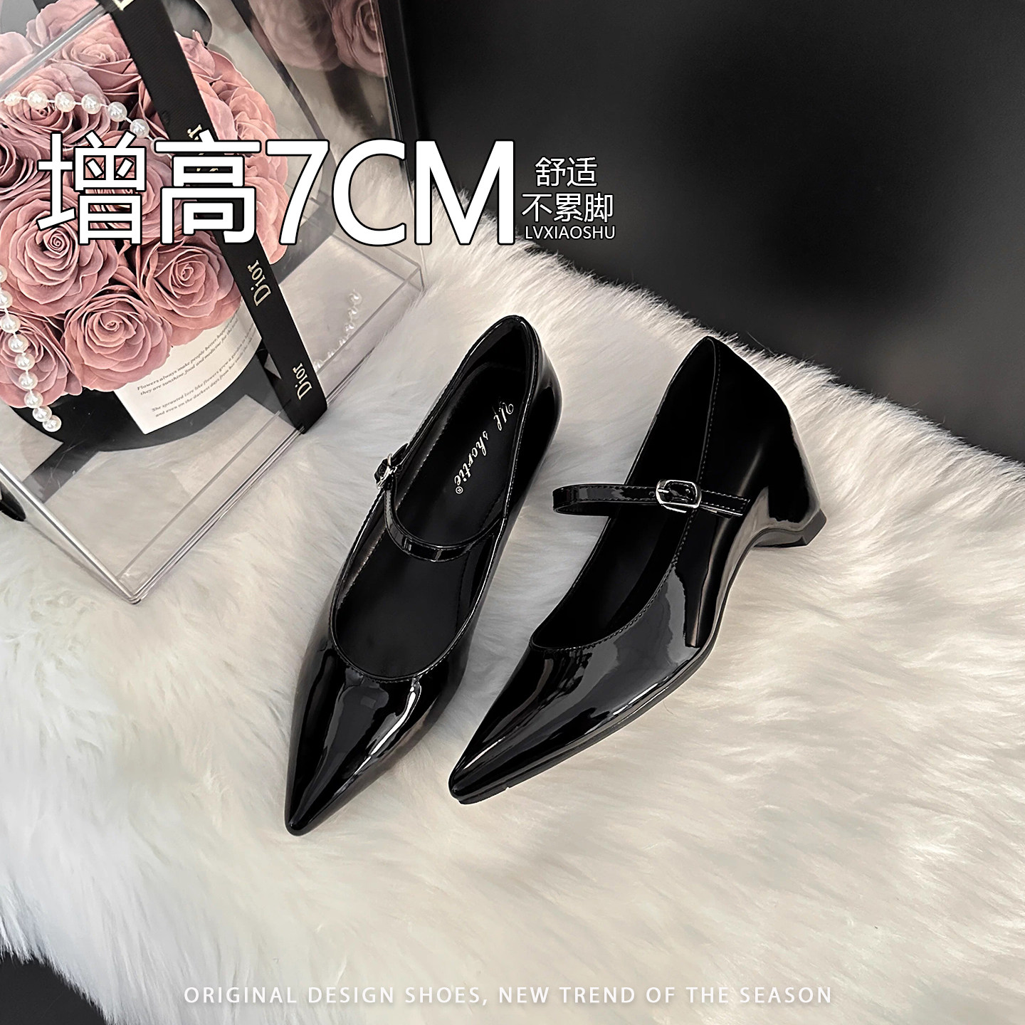 法式名媛内增高漆皮尖头玛丽珍鞋女2026新款优雅气质粗跟浅口单鞋
