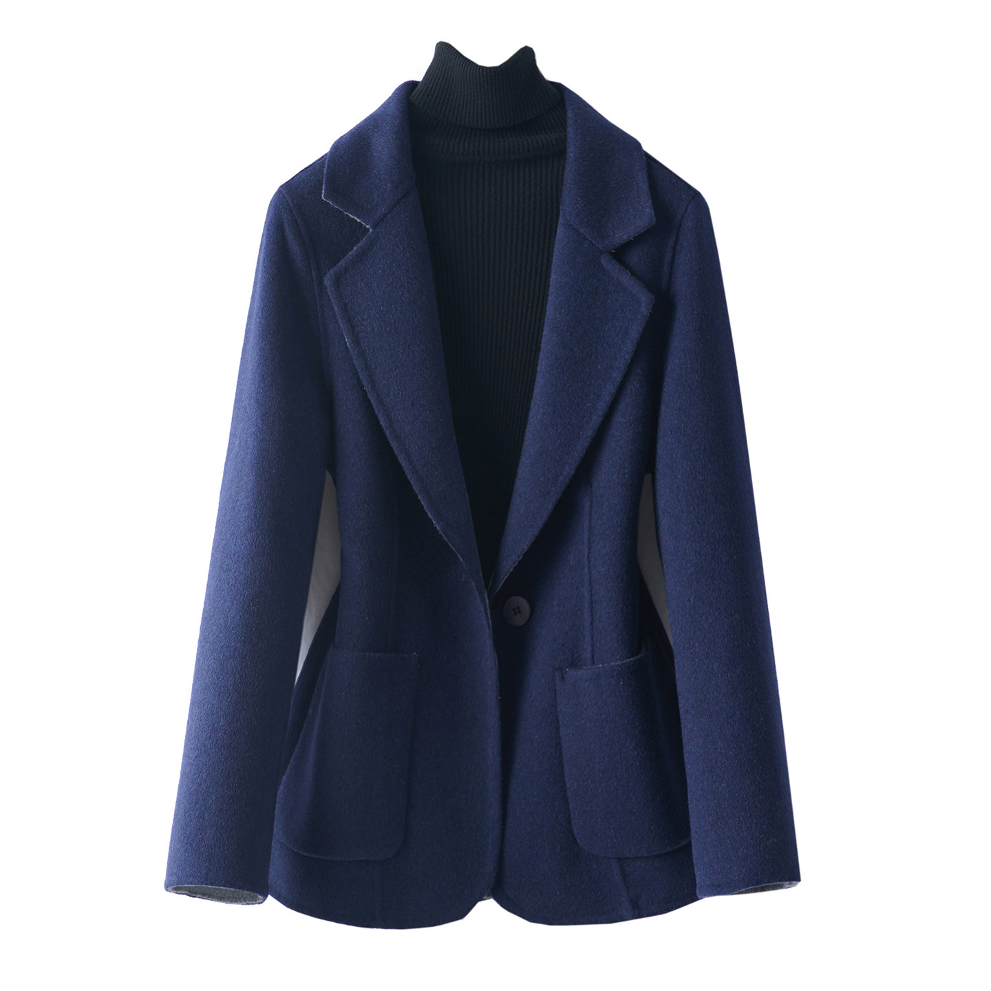 双面绒西装外套女式短款修身显瘦气质加大码西服式羊毛呢大衣