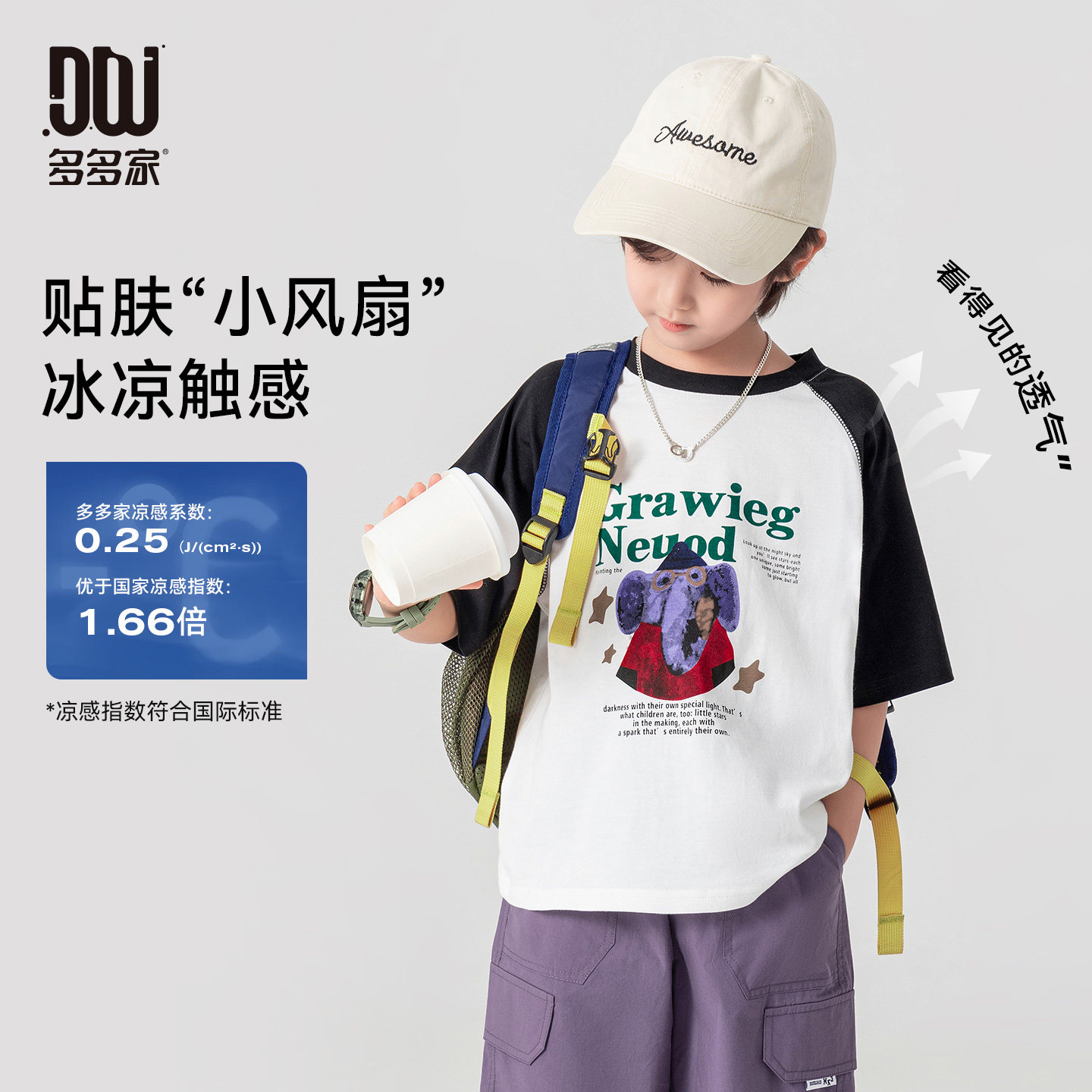 多多家男童T恤短袖纯棉儿童凉感上衣2026新款夏装男孩夏季打底潮
