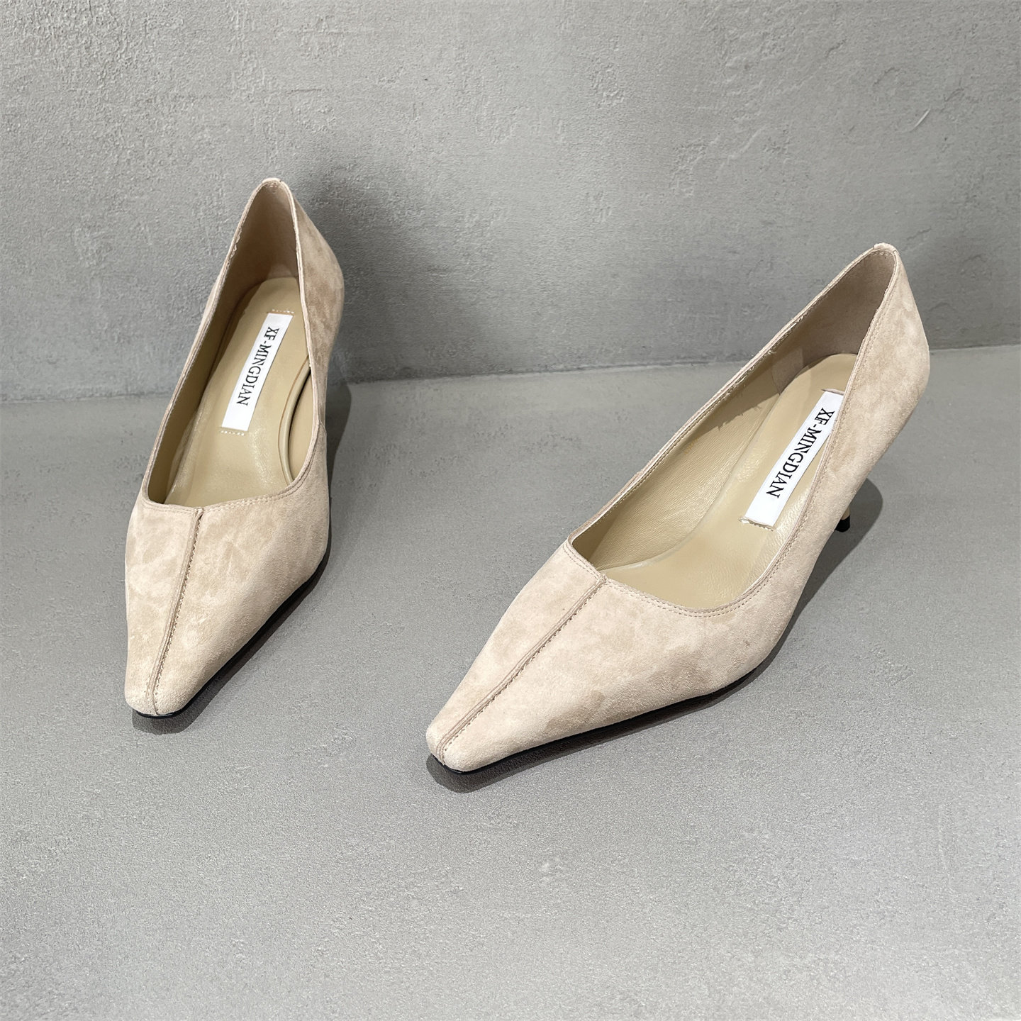 欧洲站2026春款真皮女鞋百搭新品纯色法式磨砂皮尖头浅口高跟单鞋