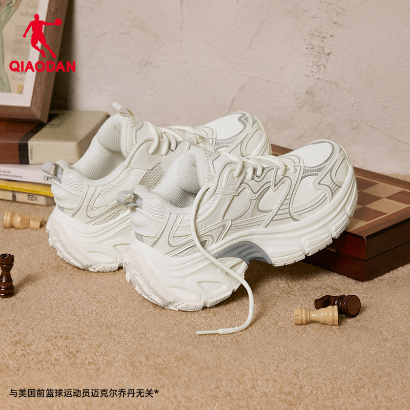 流沙轮胎鞋乔丹皮面防水老爹鞋女2026夏季厚底增高休闲鞋白色鞋子