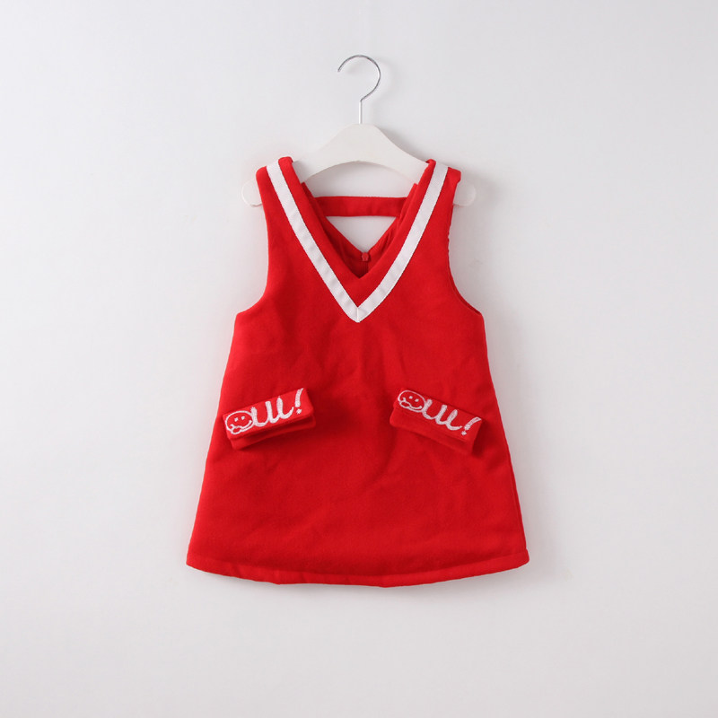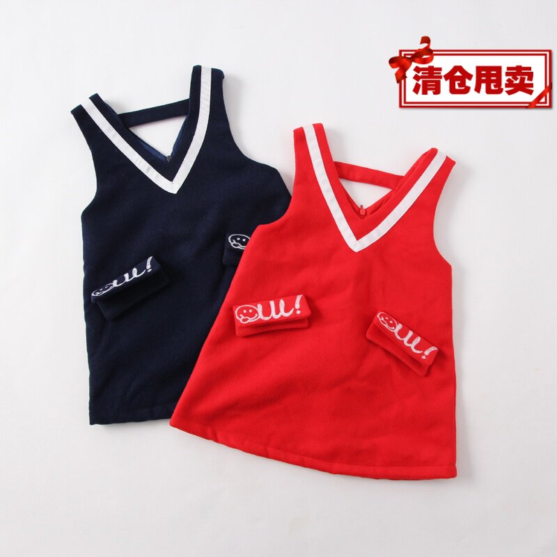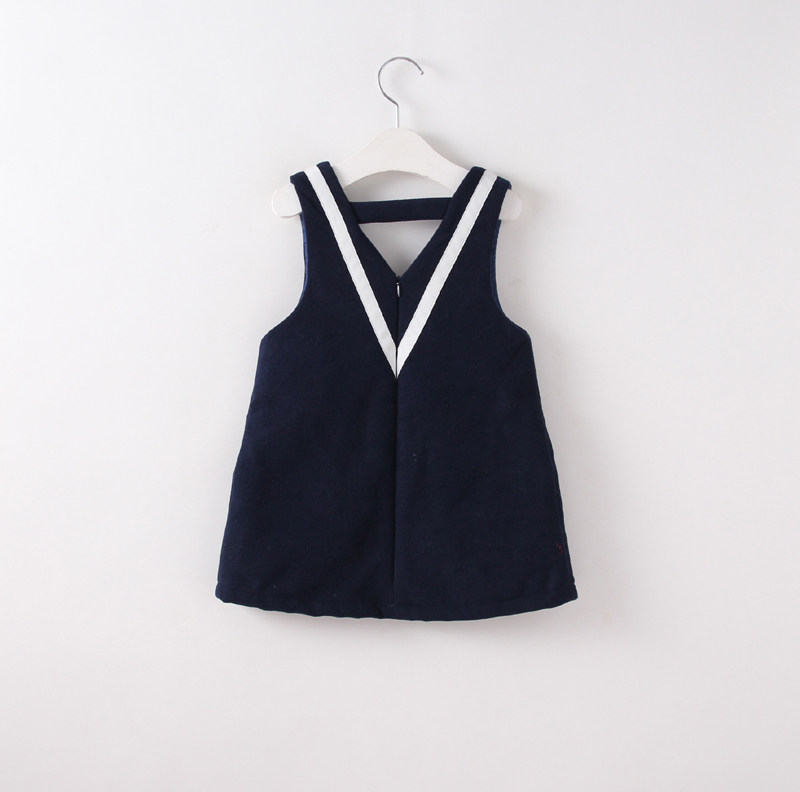 女童秋冬装学院风薄呢料背心裙儿童加厚公主裙童装V领呢子连衣裙