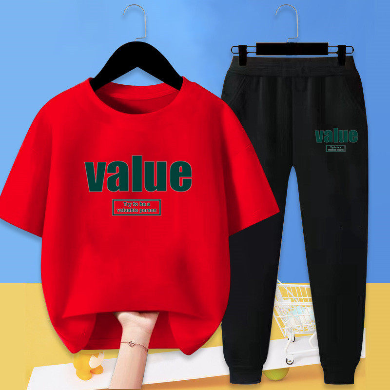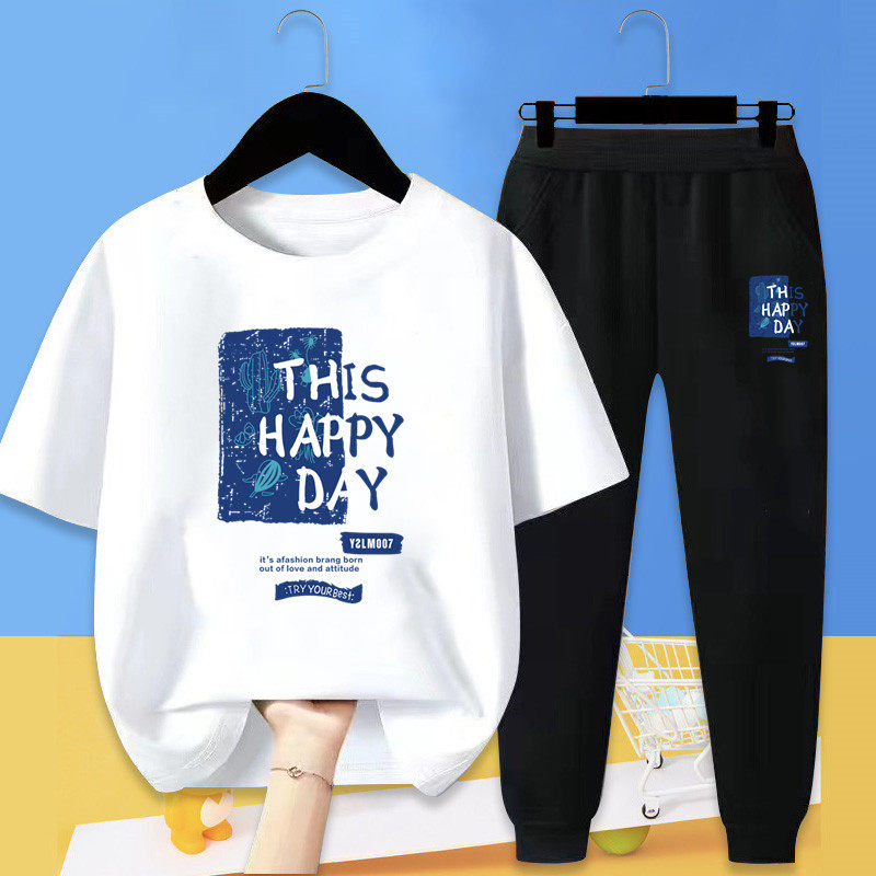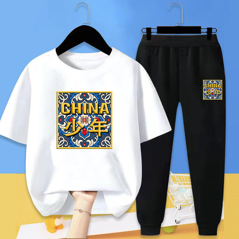 童装男童春夏T恤套装中大童纯棉短袖薄款防蚊裤长裤休闲运动款潮