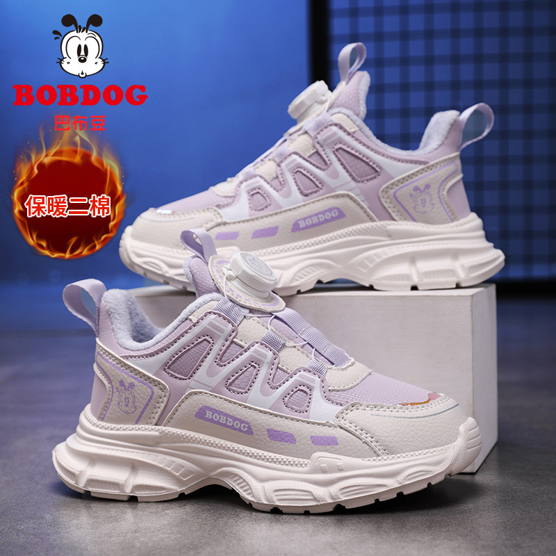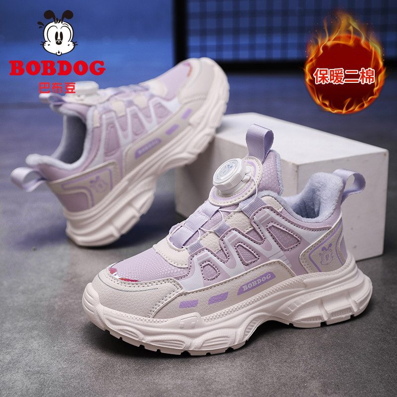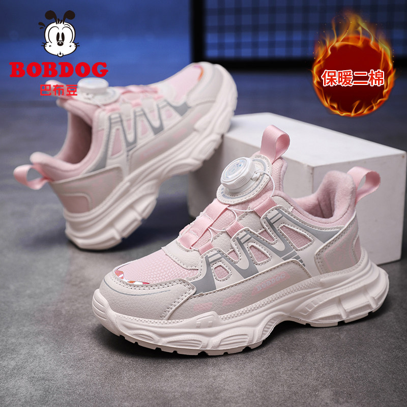 巴布豆儿童鞋子女童棉鞋冬季加绒二棉保暖防水女孩运动鞋女款秋冬