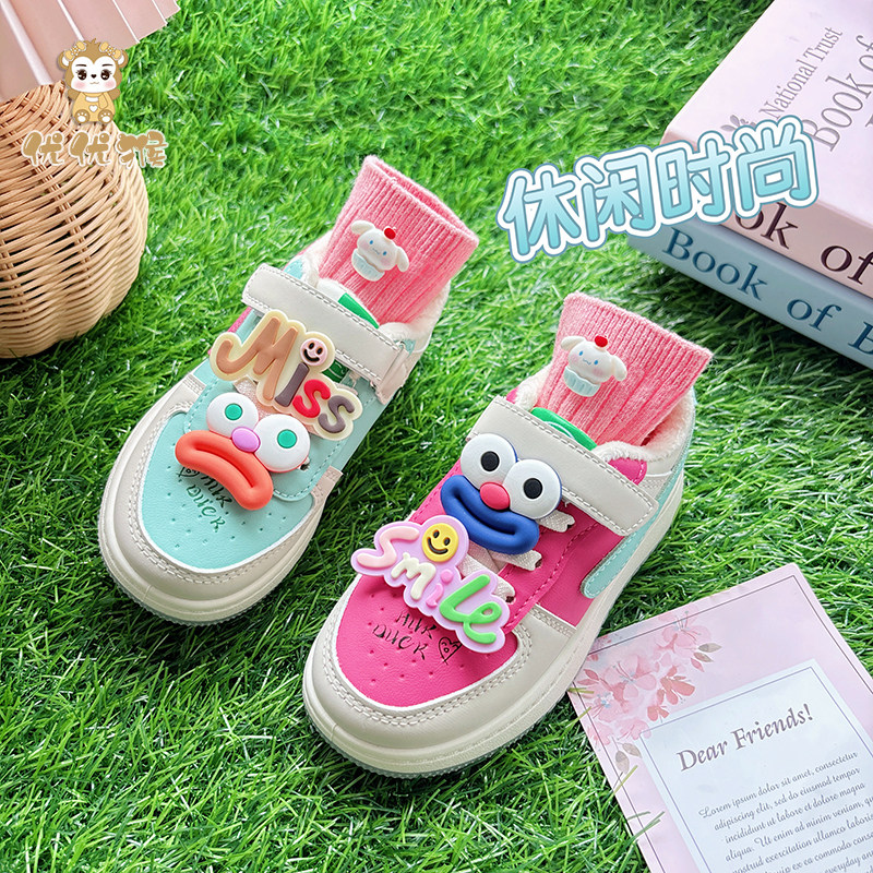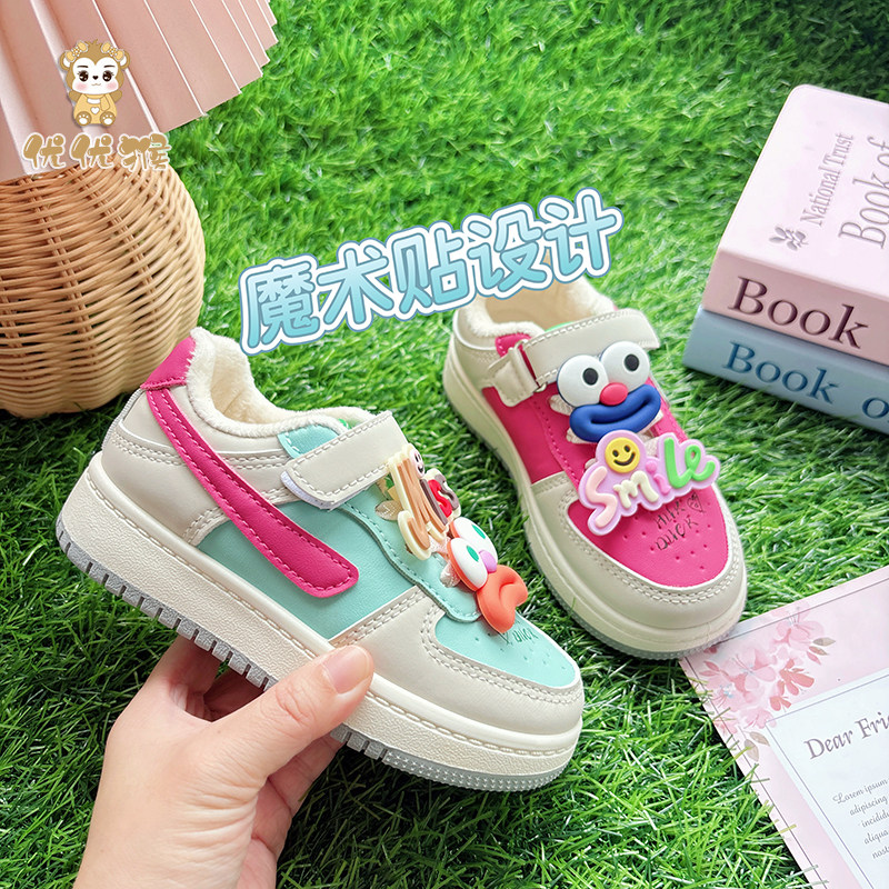 高颜值女童红蓝双色加绒鸳鸯鞋原创女款运动板鞋新款超火二棉鞋子