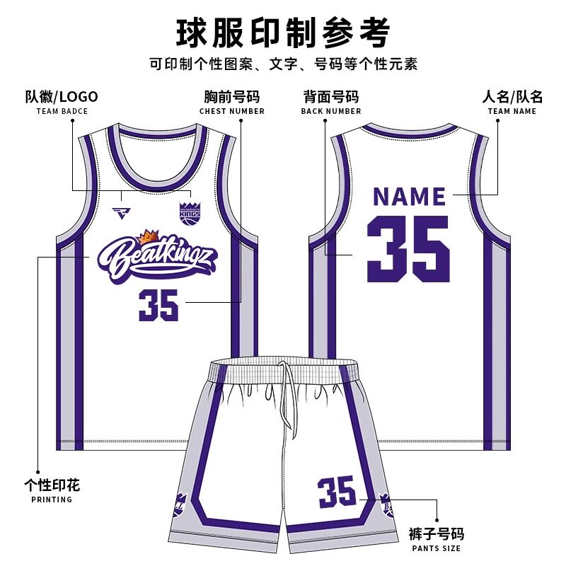 美式篮球服定制套装男比赛队服夏季大学生运动背心紫色国王球衣