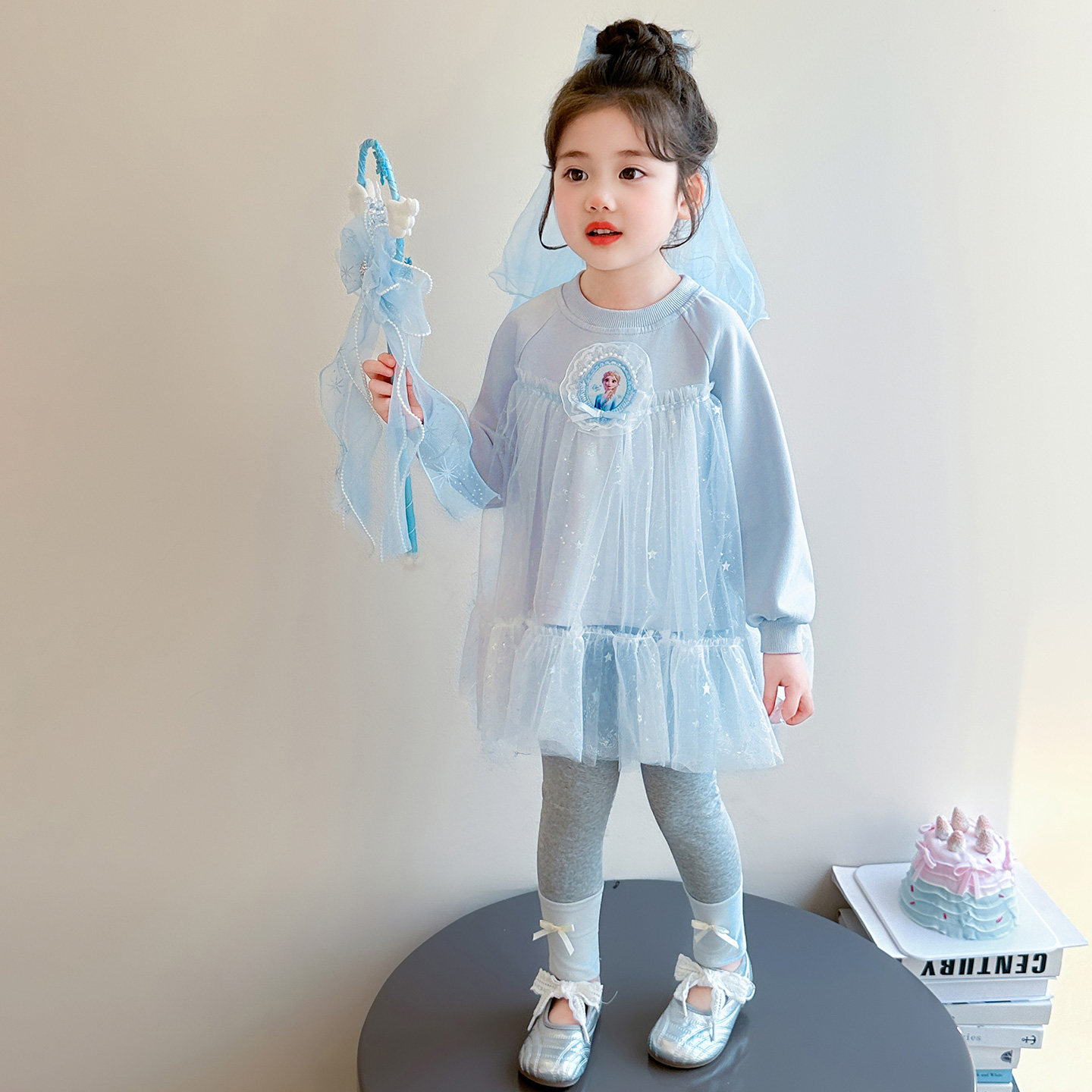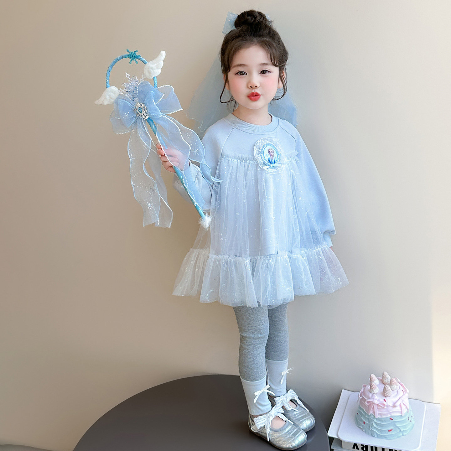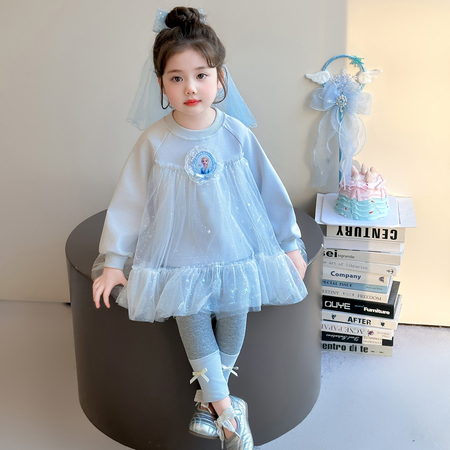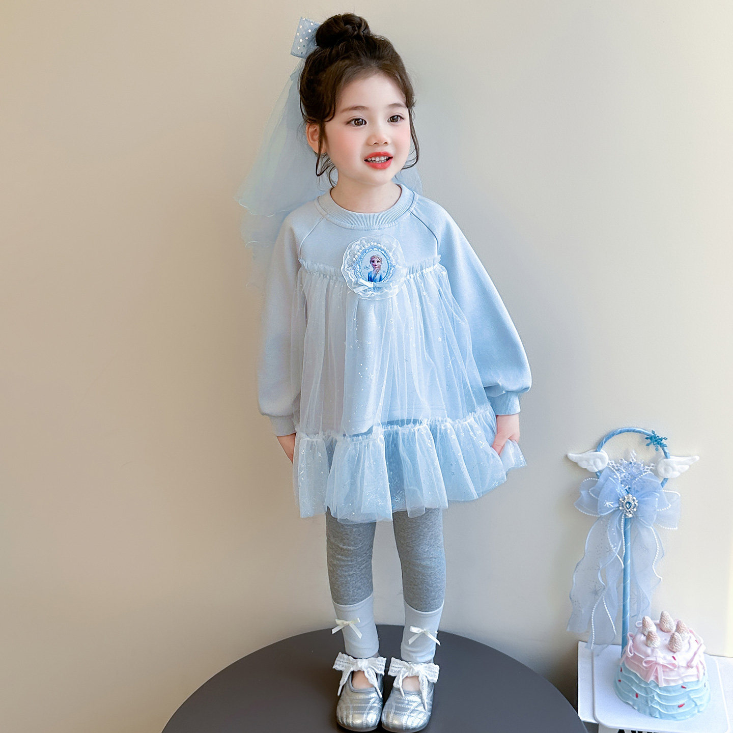 女童春秋爱莎蓝套装2026新款洋气时髦儿童女宝宝春季春装早春卫衣