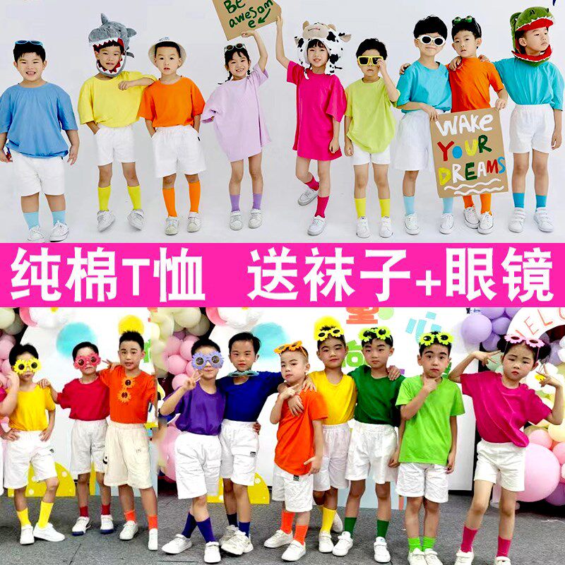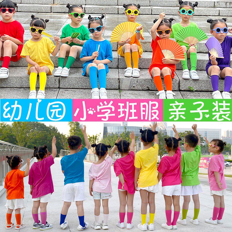 儿童彩色t恤纯棉小学生运动会班服定制短袖糖果色幼儿园亲子服装