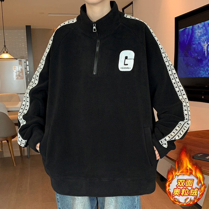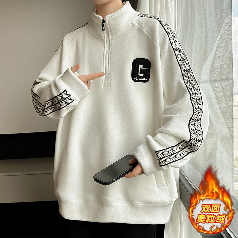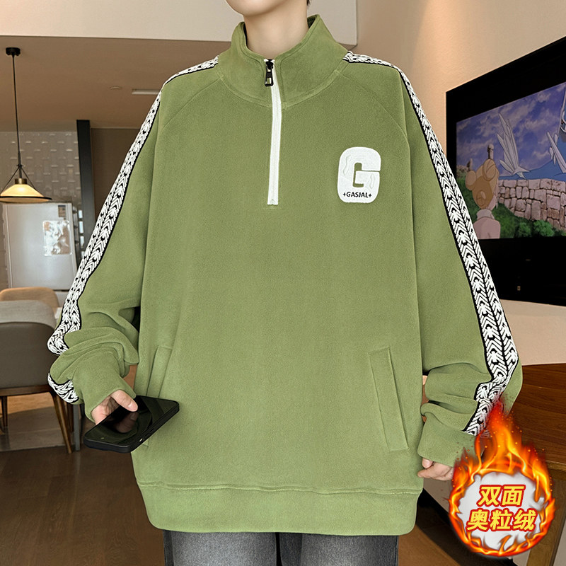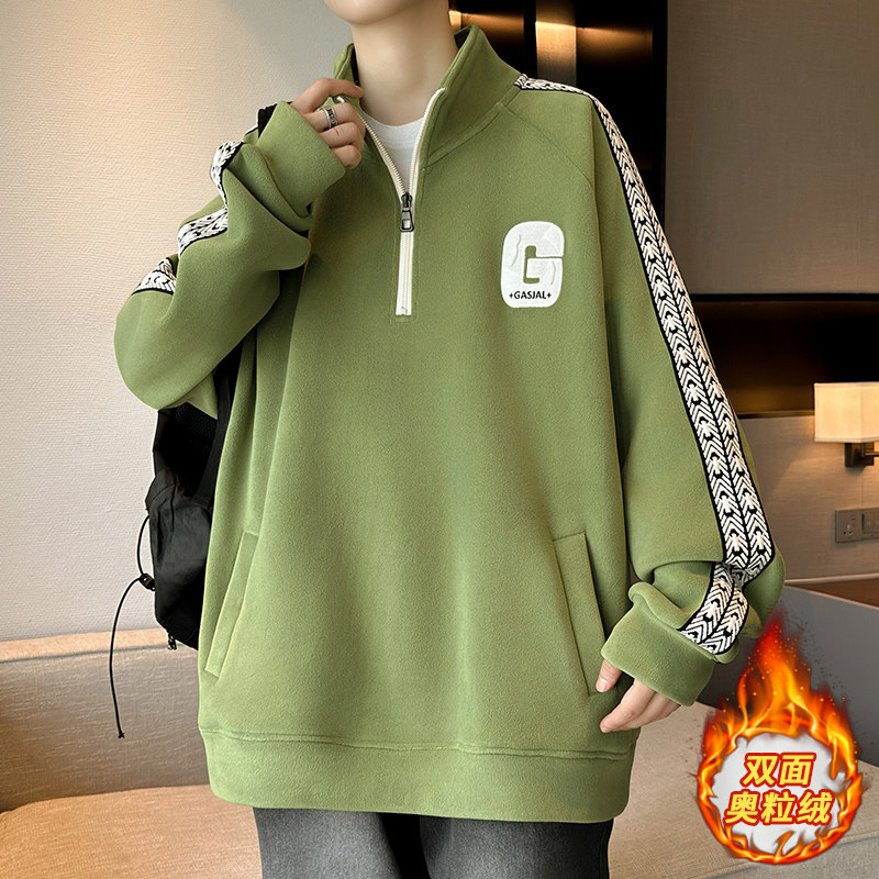 双面奥粒绒青少年卫衣男加绒加厚秋冬新款半高领半拉链初中生大童