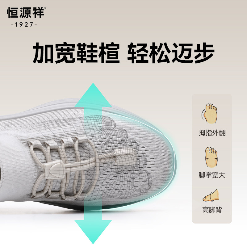 恒源祥2026夏季新款健步鞋男款一脚蹬飞织透气轻便网面鞋休闲高端