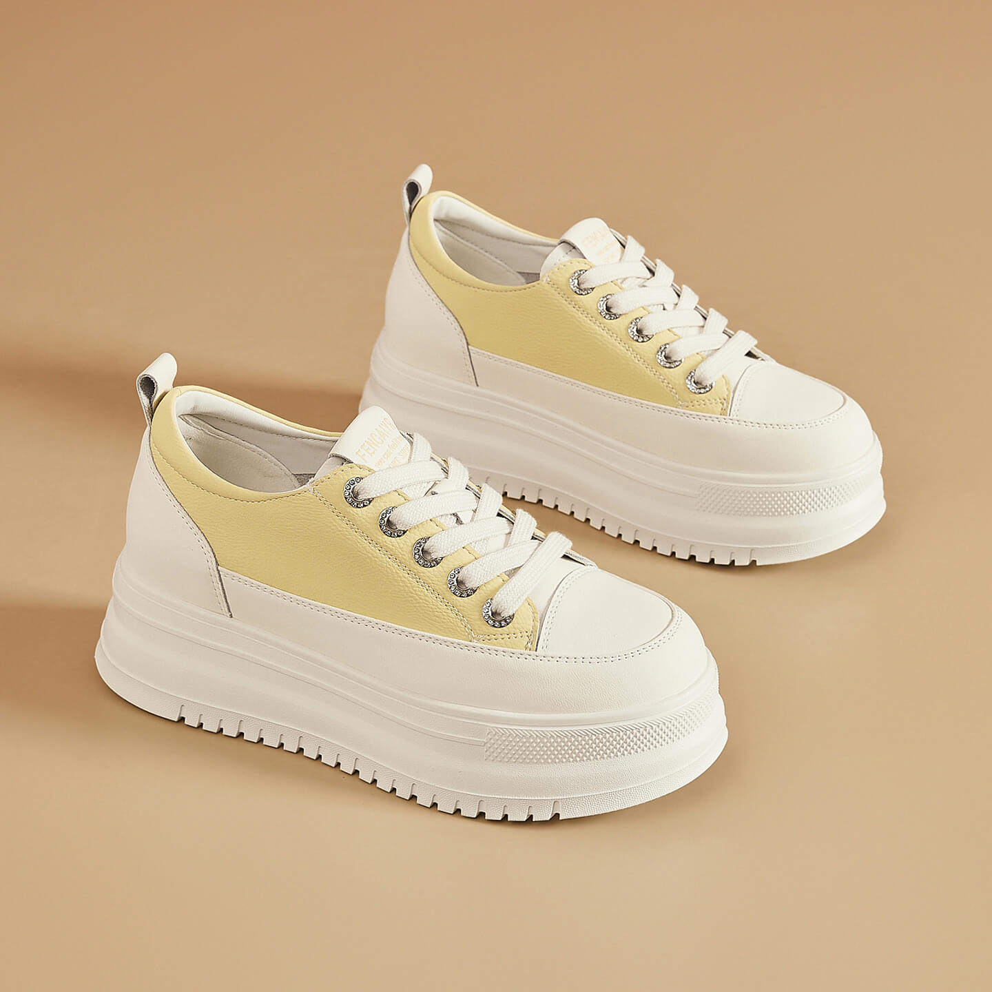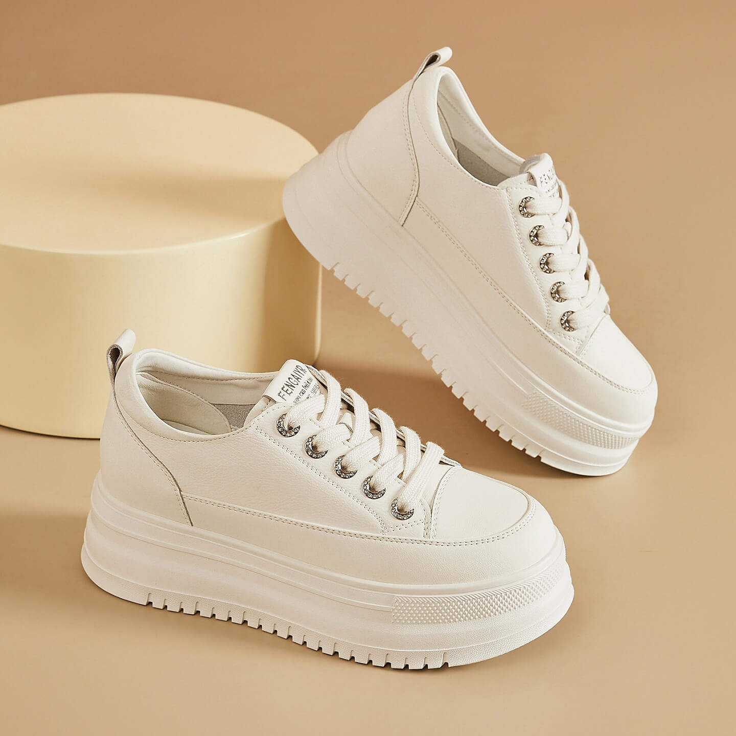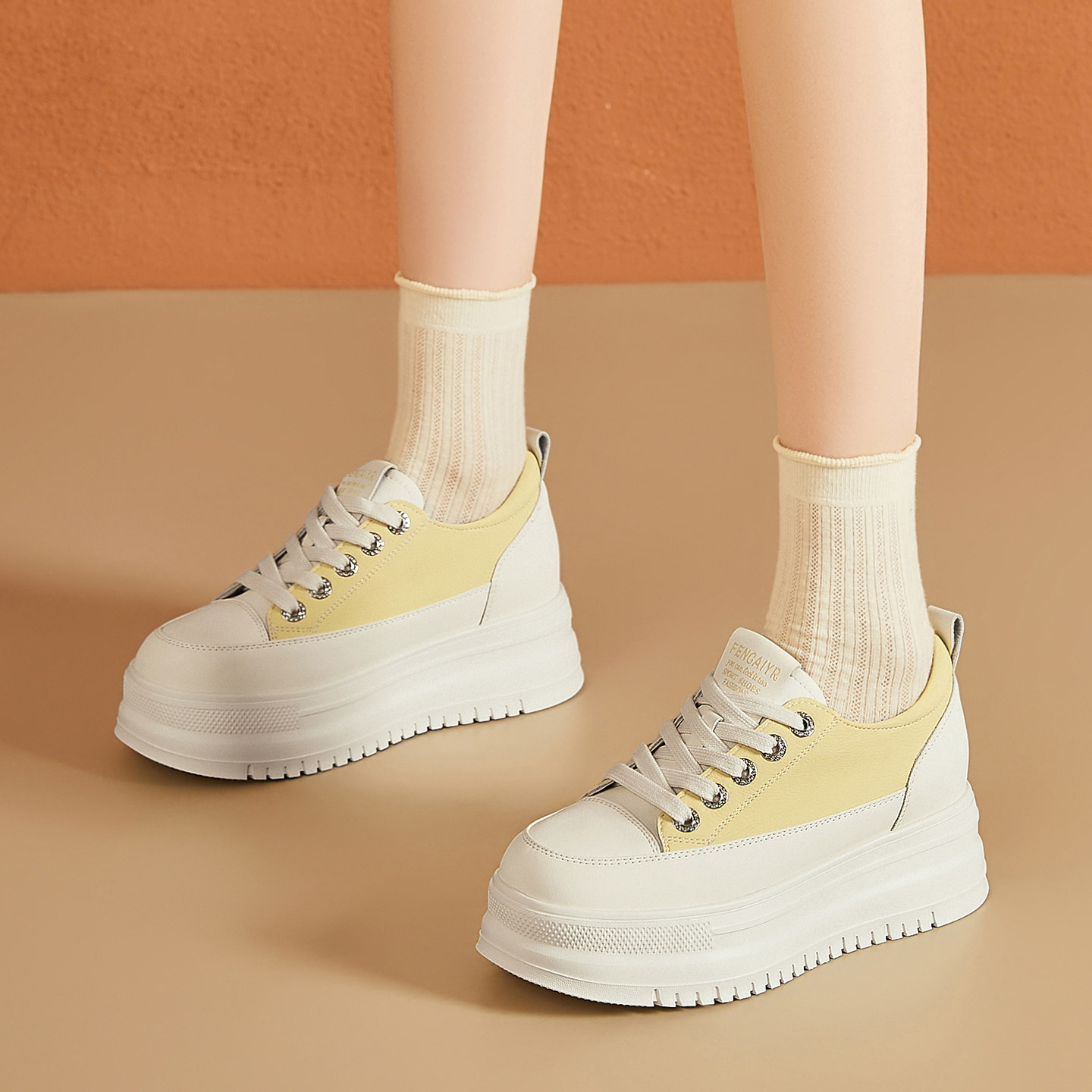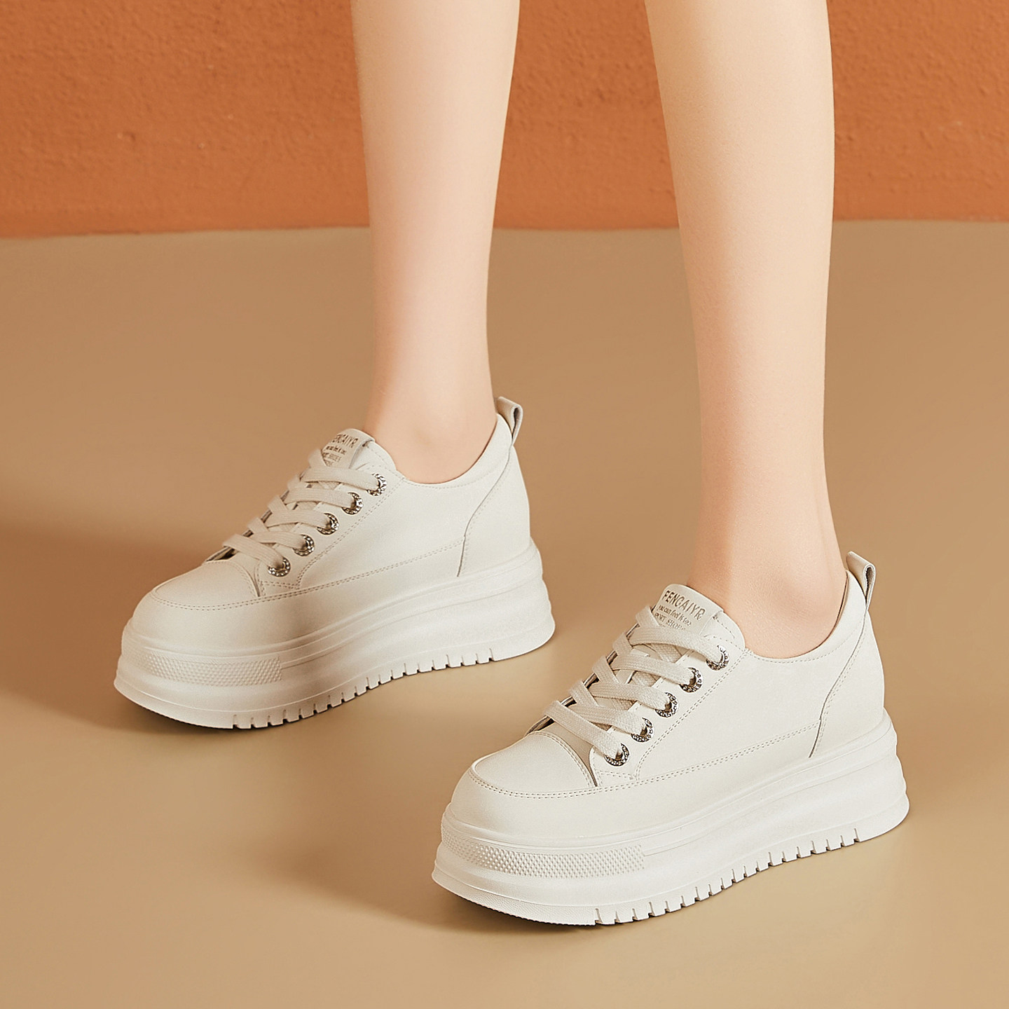 真皮厚底内增高小白鞋女2026新款春季显瘦轻便圆头松糕休闲单鞋潮