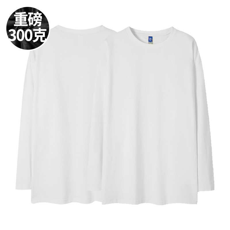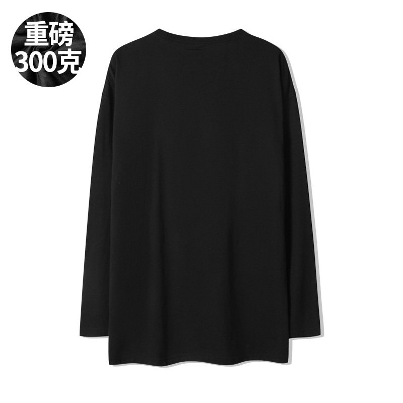 300g 日系复古美式重磅厚实纯棉OVERSIZE落肩宽松圆领长袖T恤男款