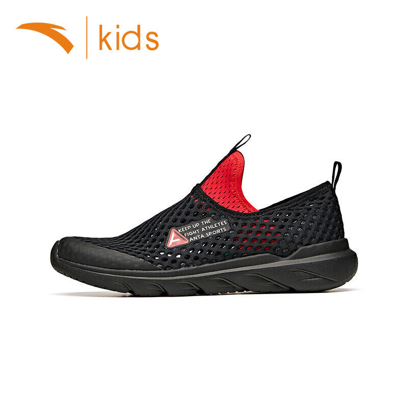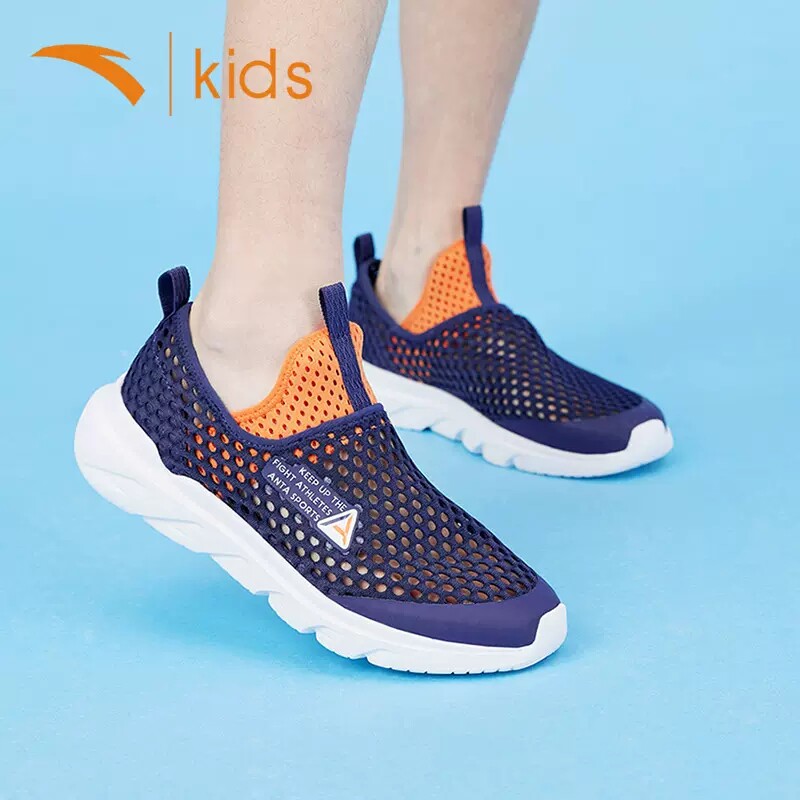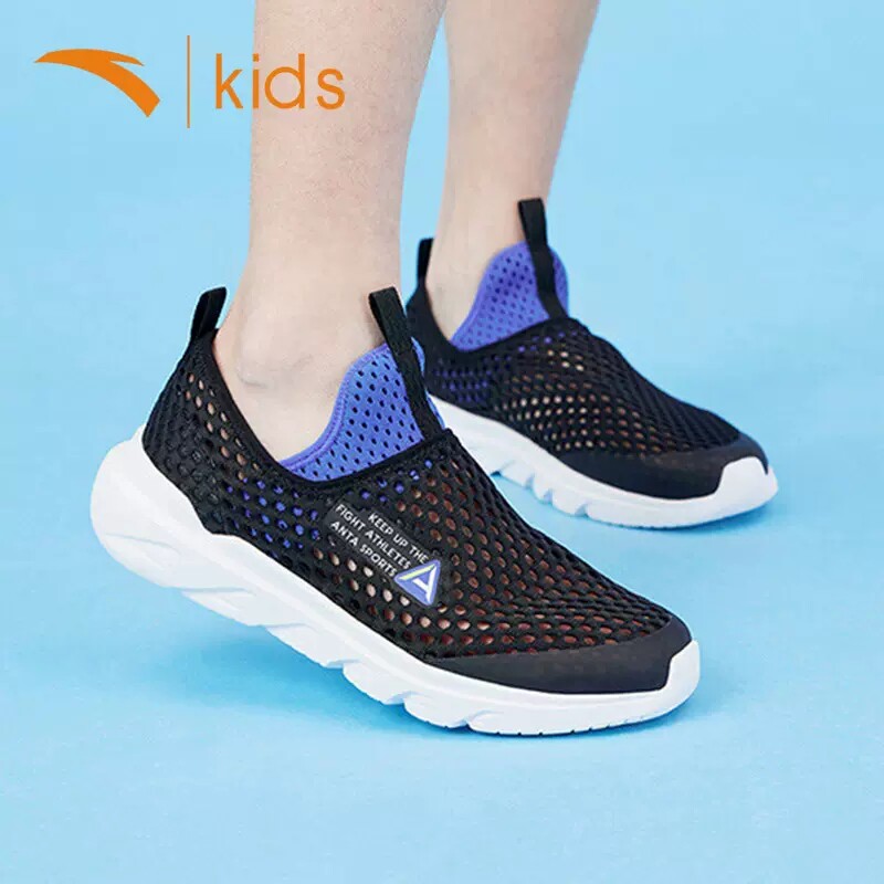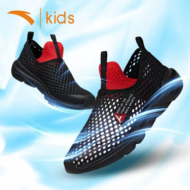安踏儿童大网眼透气大童跑步鞋春季女童运动鞋男童一脚蹬鞋子镂空