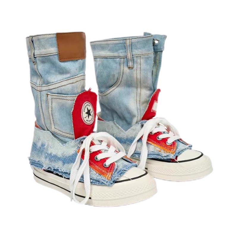 小众鸳鸯潮鞋女2026夏季薄款内增高舒适帆布凉鞋女甜酷风中筒凉靴